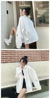 夏服韓国ファッションルーズトップス 薄手カジュアルホワイトジャケット レディース 夏物 スタイル コーデ marchs6756960246987