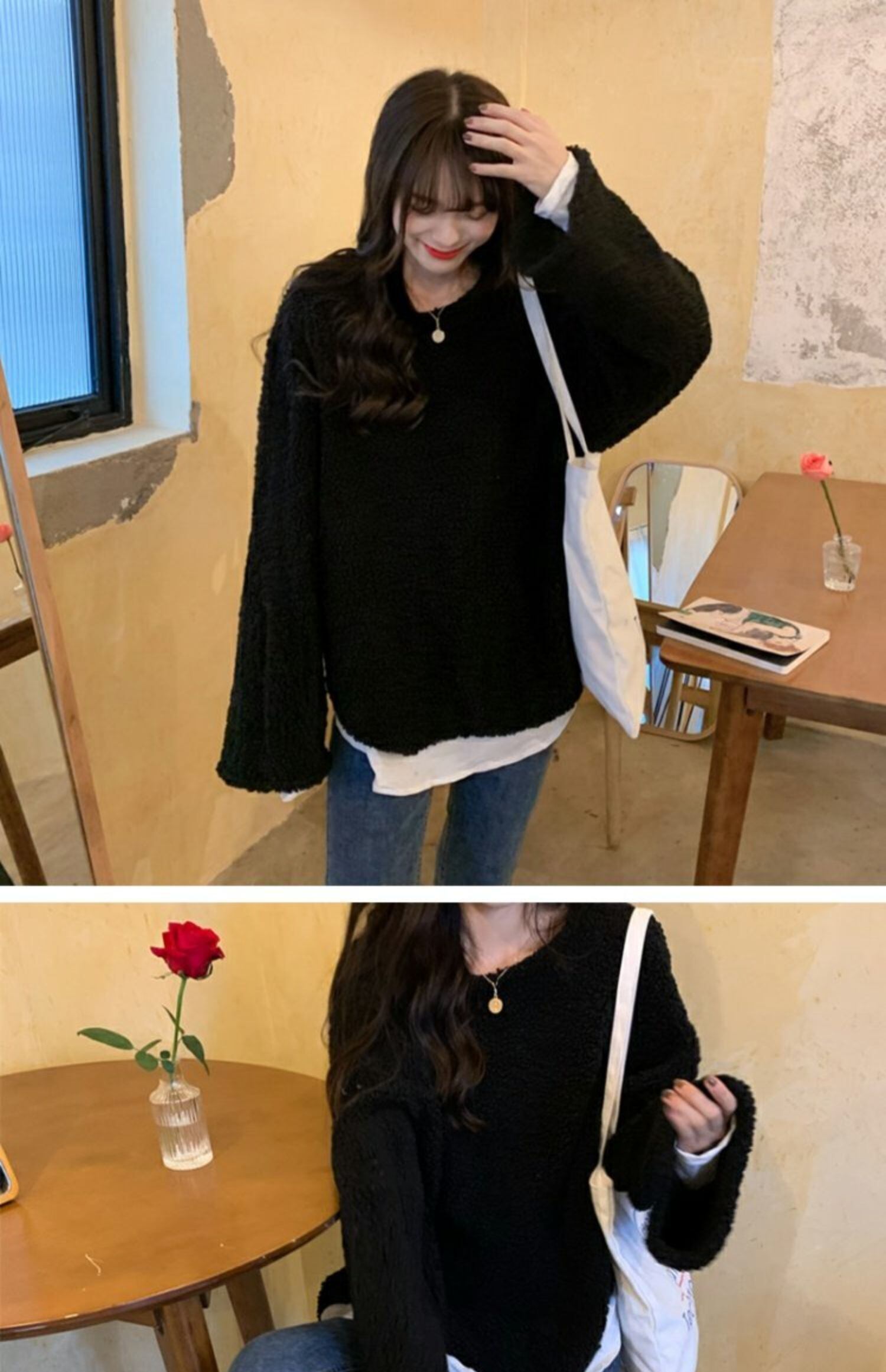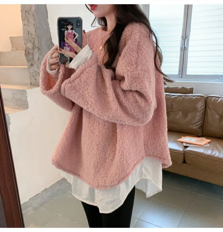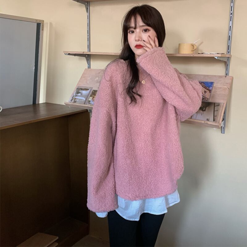 ウールセーター レディースツーピース ルーズラウンドネックプルオーバー トップス ウィンター 冬物 Oネック ステッチ コーデ marchs6789398907972