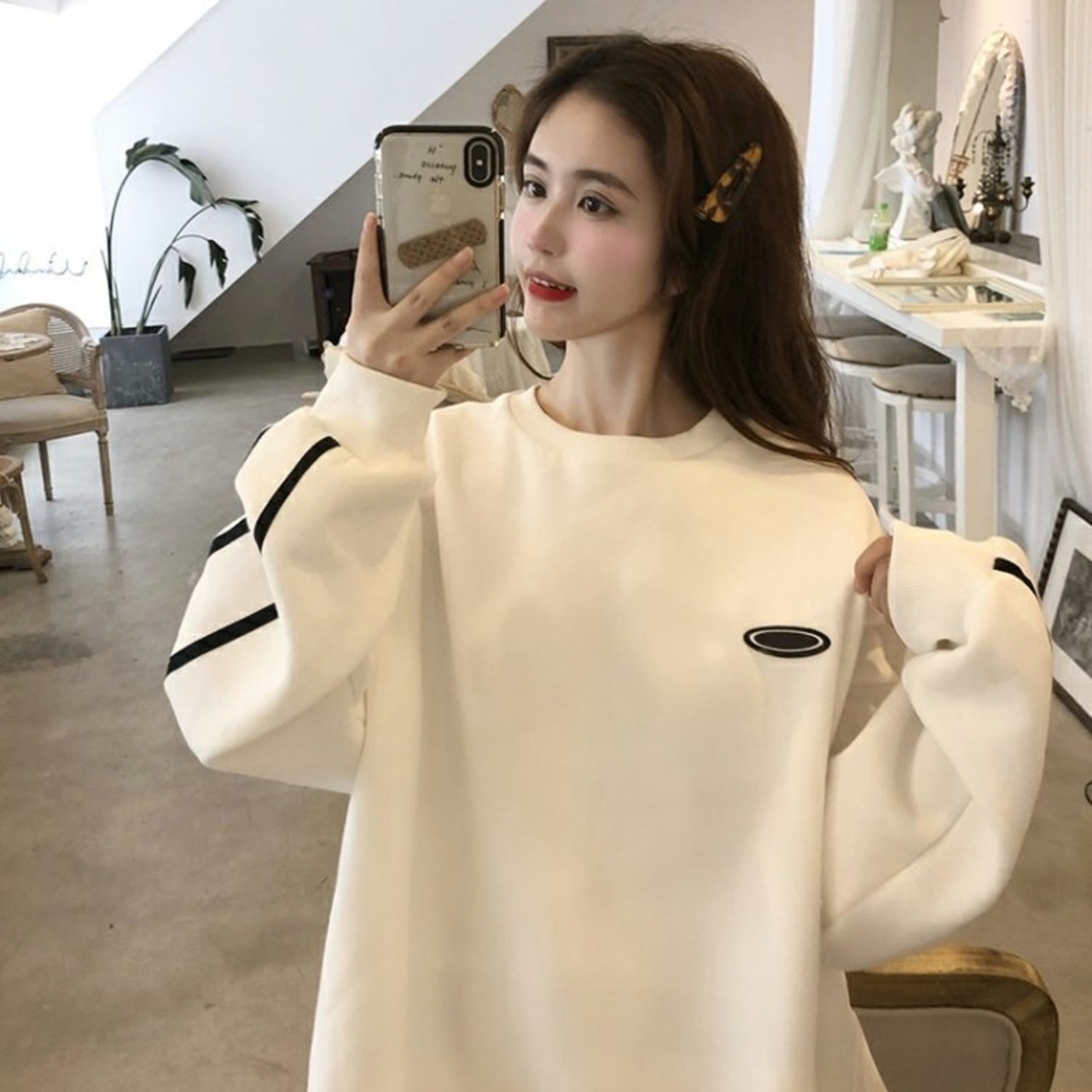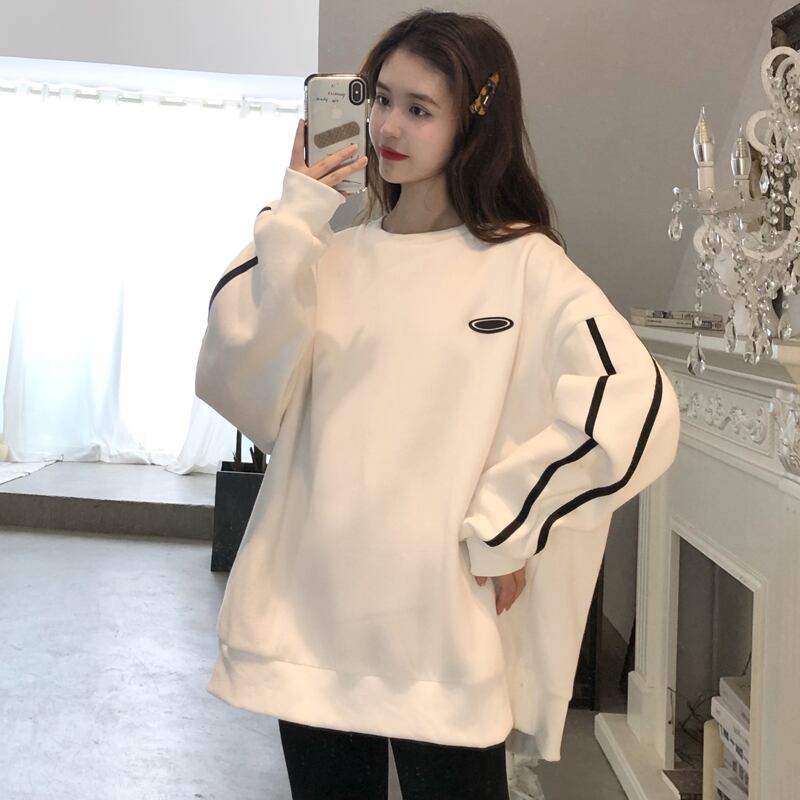 厚みセーター レディーストレンドスプリング韓国ファッションラウンドネックルーズホワイトトップス 春物 Oネック スタイル コーデ marchs6796372830722