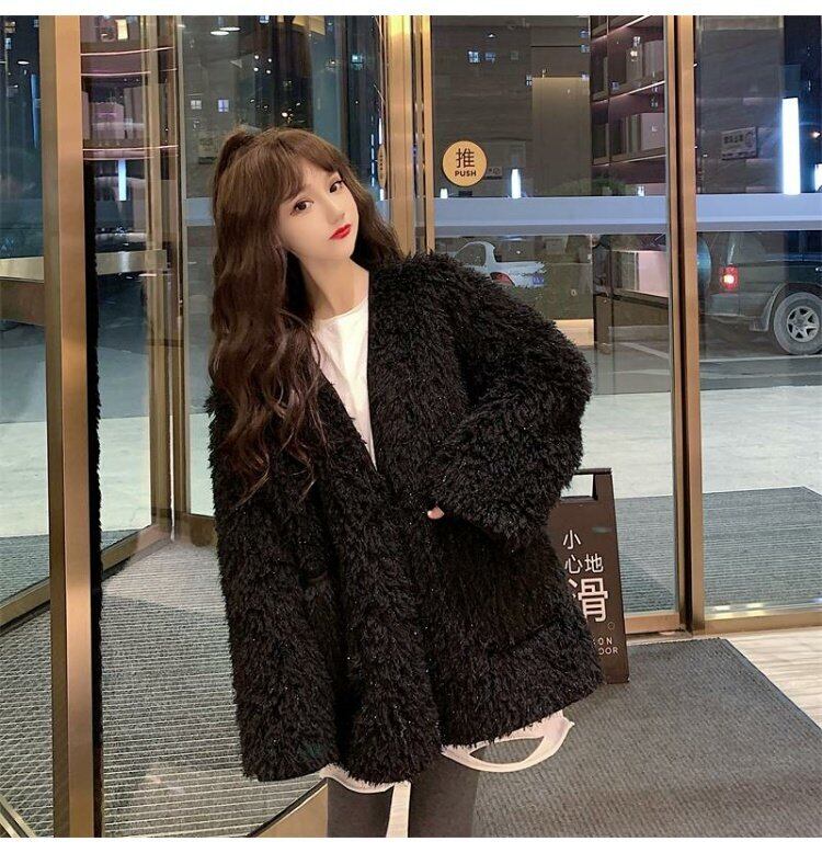 ウールジャケット レディースウィンタートレンドルーズファーコート 冬物 ミドル丈 コーデ marchs6711907536083