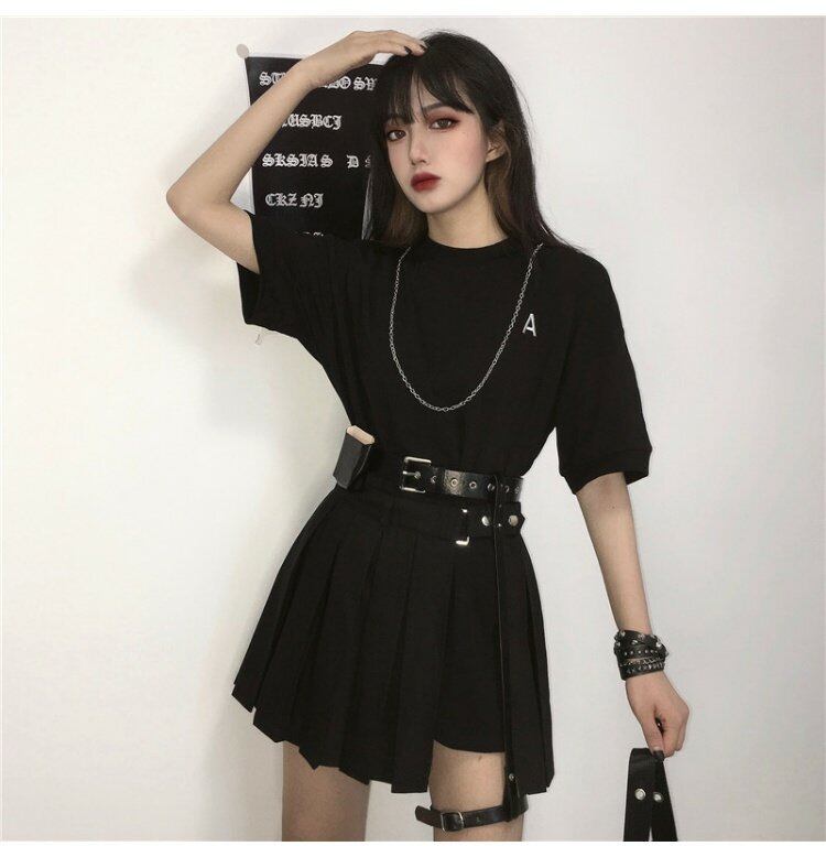 色:ブラックロングT+チェーン,ショートスカート+ベルトウエストバッグとレッグリング
