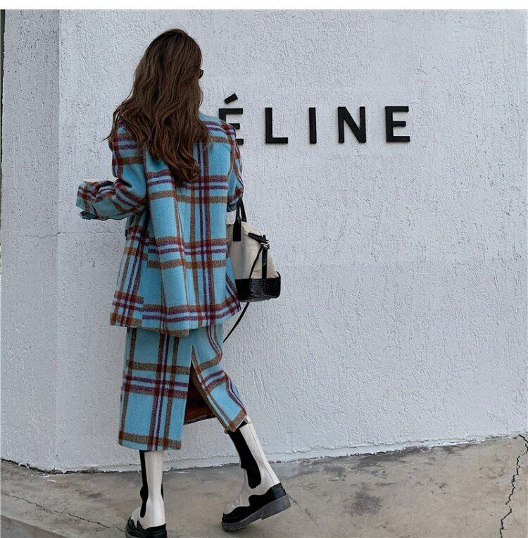 スタイルレディーススプリングスタンダード格子柄ジャケット スカート レトロ ストリート 春物 コーデ marchs6792752330491