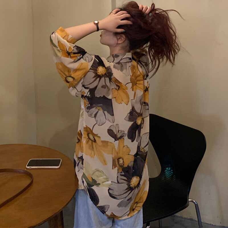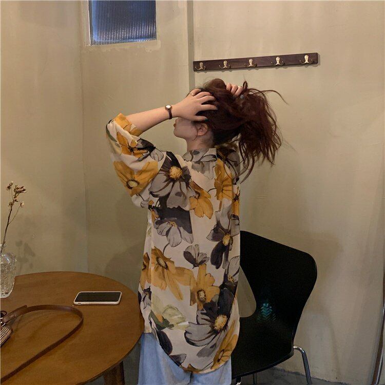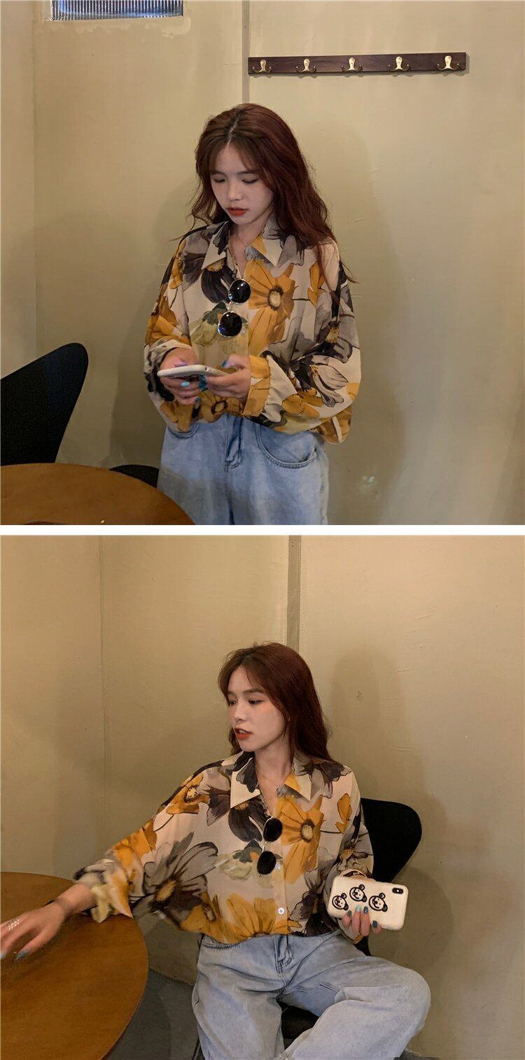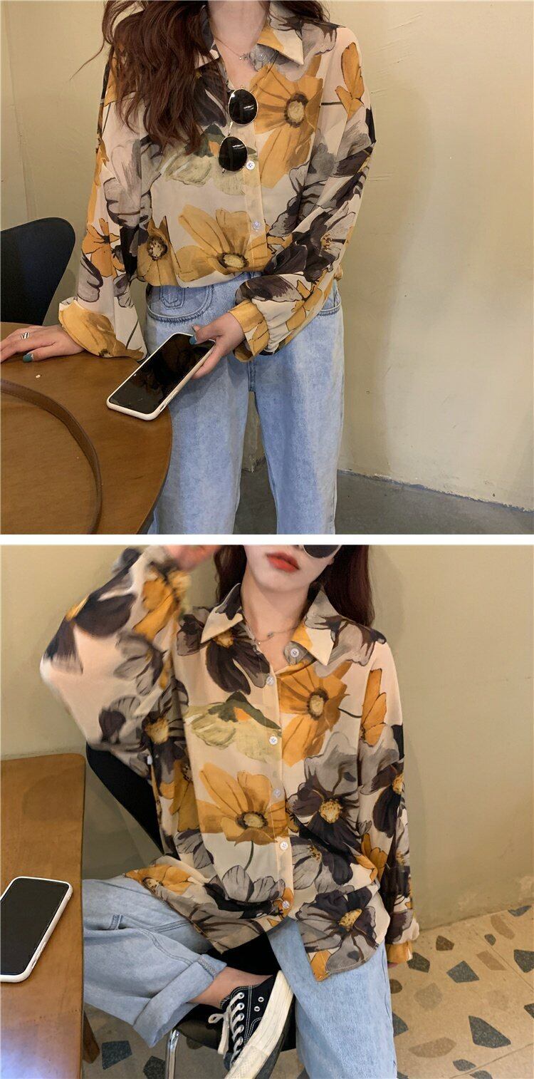 プリントシャツ レディーススプリング夏服スタイルシフォントップス ロング 大人ガーリー スウィート キュート カジュアル 春物 夏物 長袖 コーデ marchs6772304007458