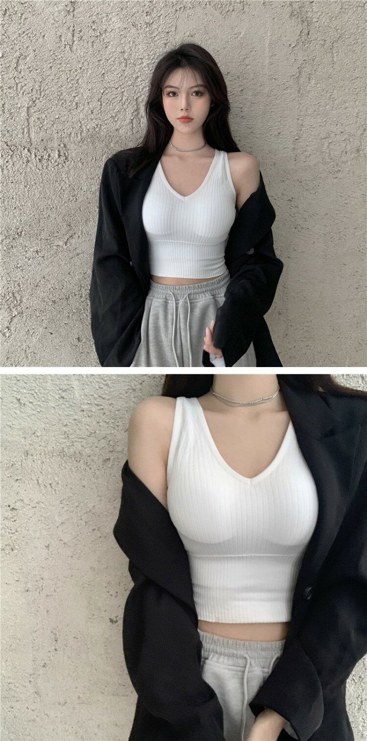 バックスリムショートゆったりレディースVネックトレンドトップス コーデ marchs6715762417881