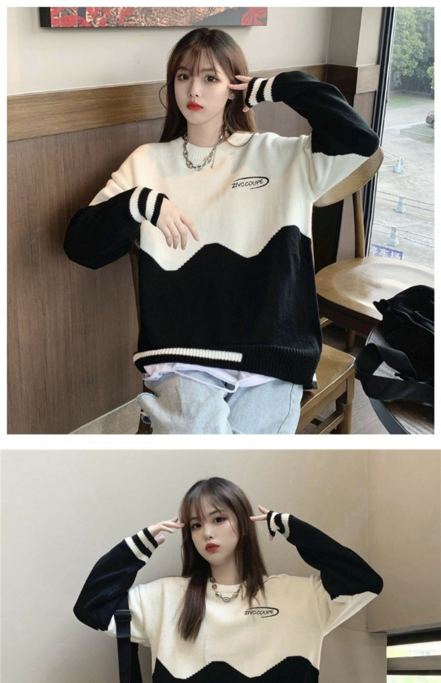 セーター レディースルーズスプリングプルオーバー ラウンドネック 春物 Oネック ステッチ コーデ marchs6712675149309