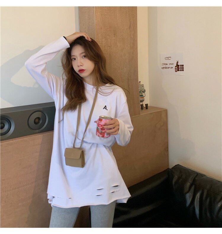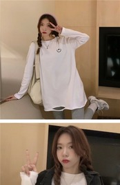 秋物ウィンタールーズホワイトゆったりシャツ Tシャツレディース ロング オータム 冬物 長袖 ミドル丈 コーデ marchs6798544666687