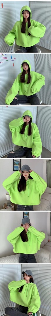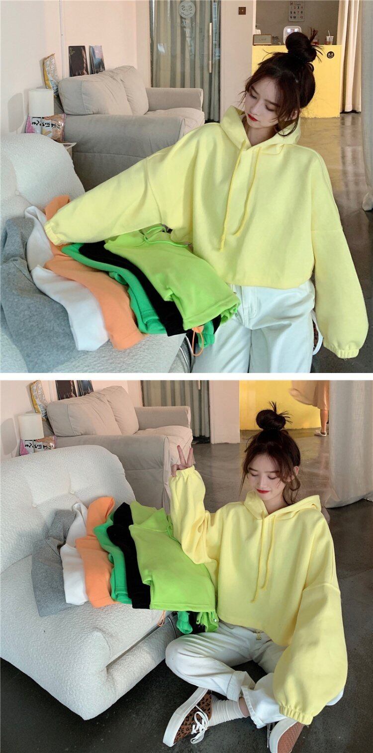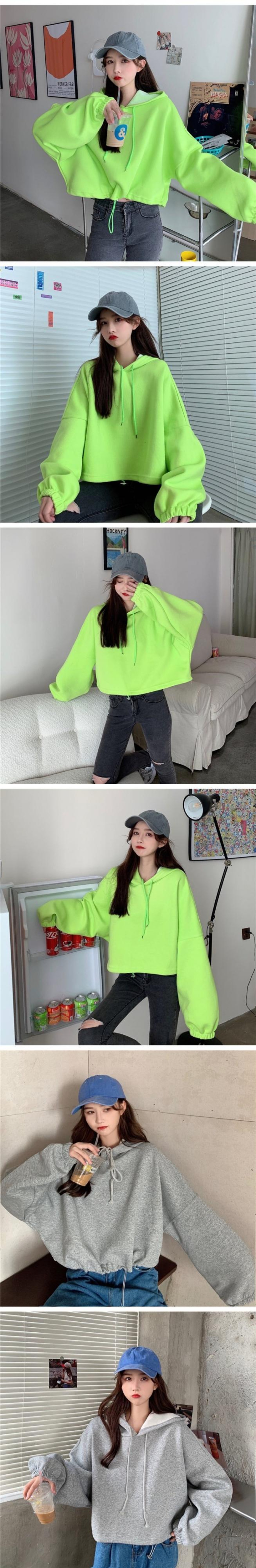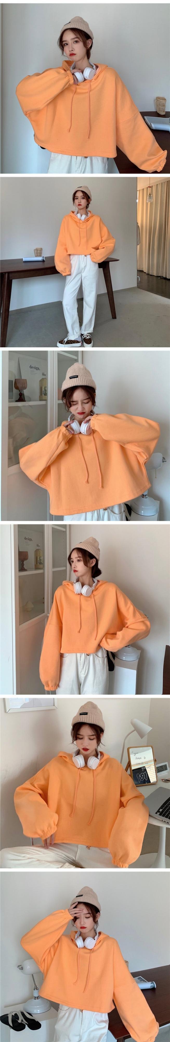 スプリング韓国ファッションスタイルショートトップス カラーオレンジフードセーター レディース ロング 春物 長袖 コーデ marchs6741502481981