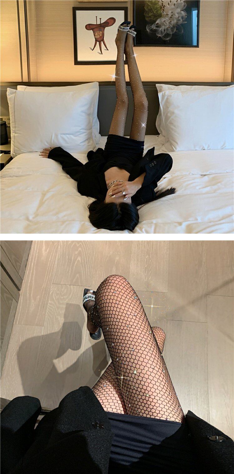 ストッキング ブラックネットスタイルホワイトソックス レディーストレンド タイツ ヨーロピアン コーデ marchs6710579182779