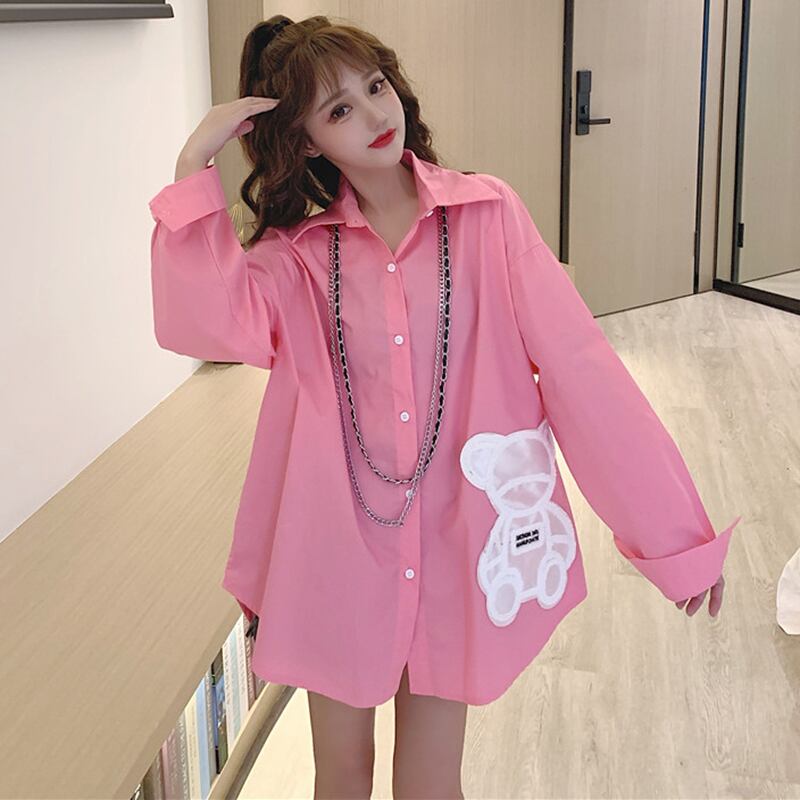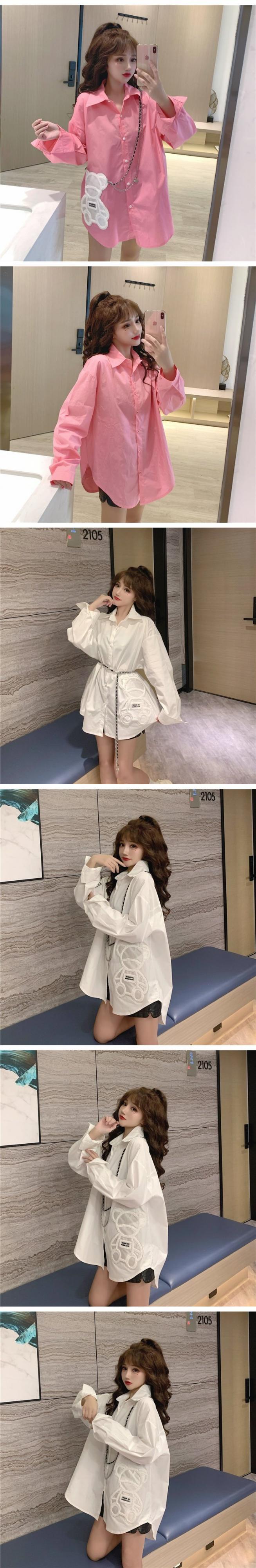 スプリングチェーン ホワイトシャツ レディーストレンドトップス 春物 ミドル丈 コーデ marchs6720287418773