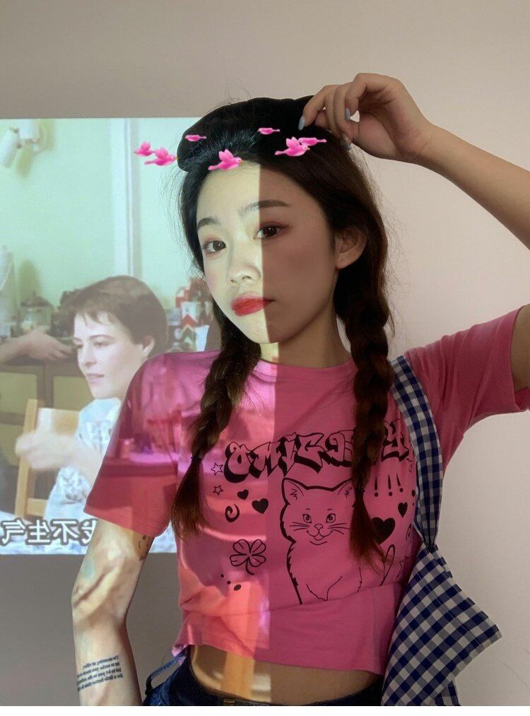 夏服プリントショートTシャツスリムクロップドトレンドトップス 夏物 コーデ marchs6720319349528