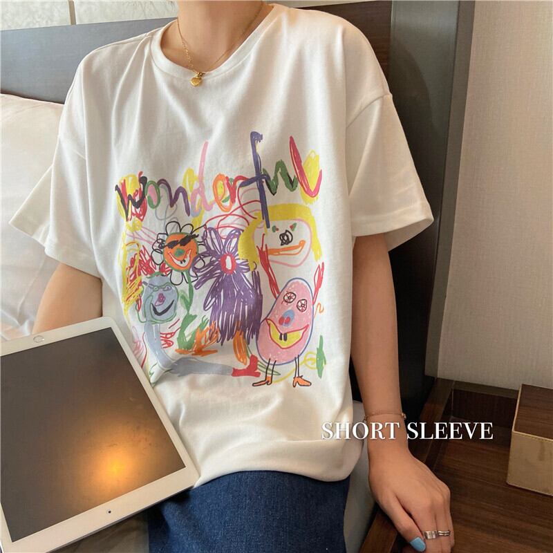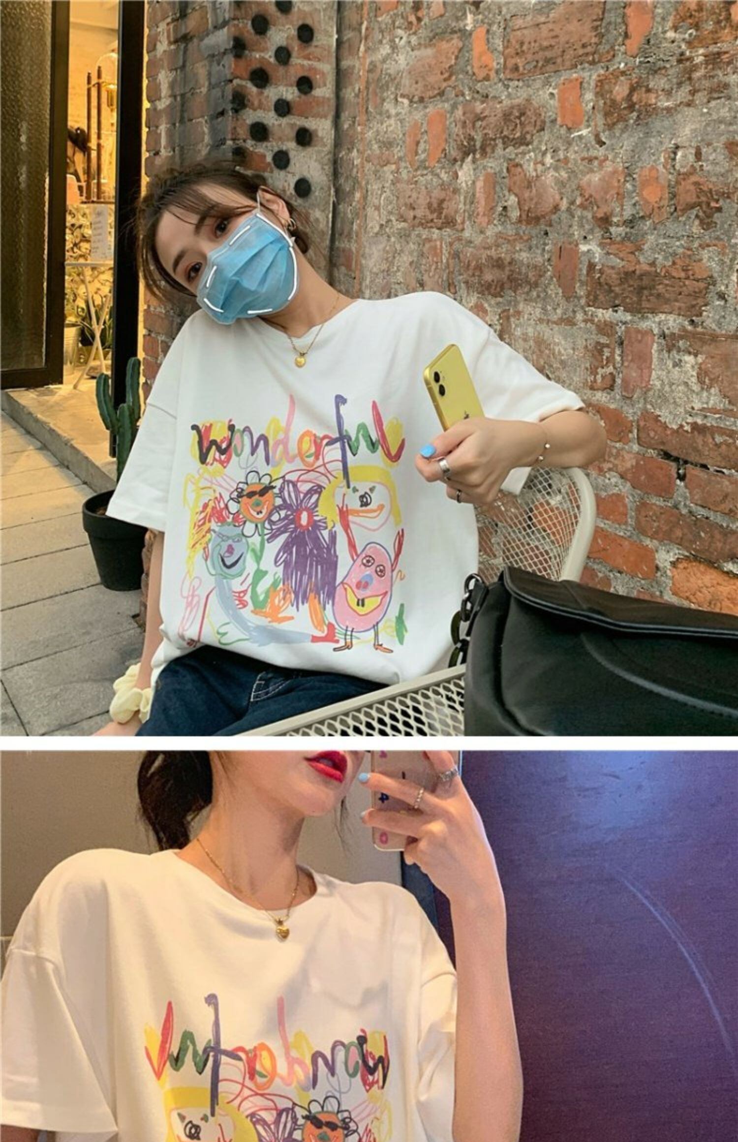 Tシャツ夏服韓国ファッションルーズトップス 夏物 スタイル ミドル丈 コーデ marchs673425393884