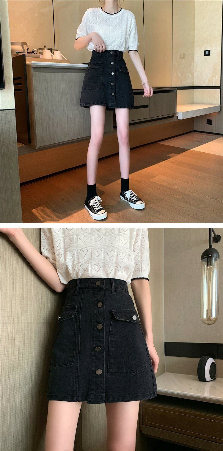 スカート 夏服ハイウェスト薄手ブラックAライン 大きめサイズ 夏物 ウエスト コーデ marchs6738328671106