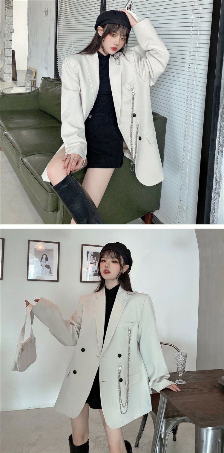 スプリング韓国ファッションベージュチェーン ジャケット レディース 春物 スタイル コーデ marchs6786544798194