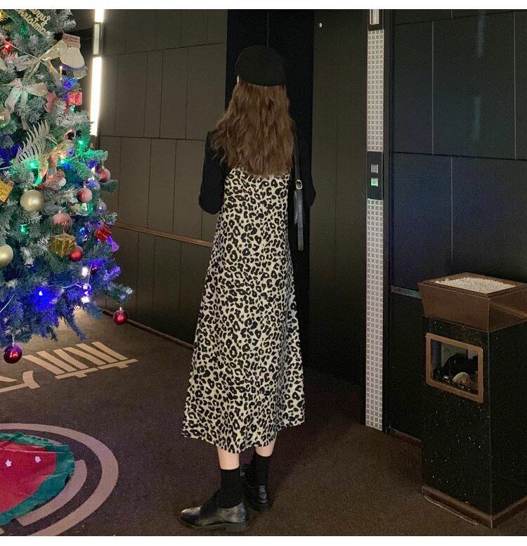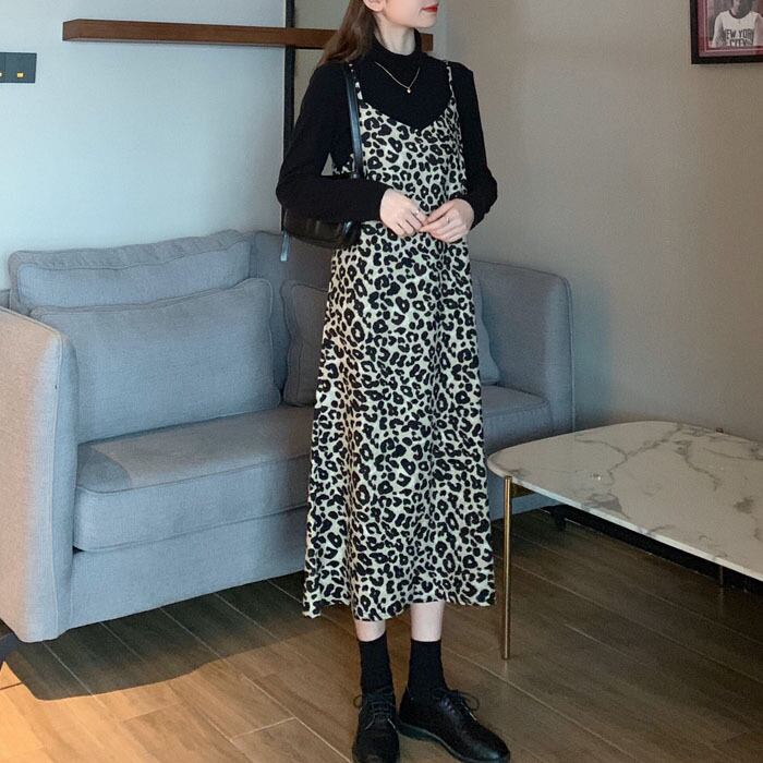 スプリングスタイルレオパードプリント柄スカート ゆったりワンピースレディース 春物 ミドル丈 コーデ marchs6717791936296