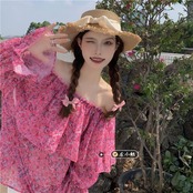 ストラップレストップス カラー夏服レッドフローラルシフォンシャツ 大人ガーリー スウィート キュート カジュアル 夏物 花柄 コーデ marchs6764041805394
