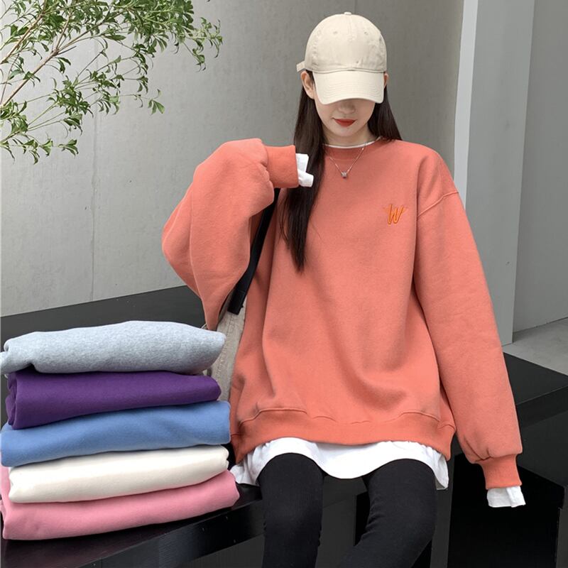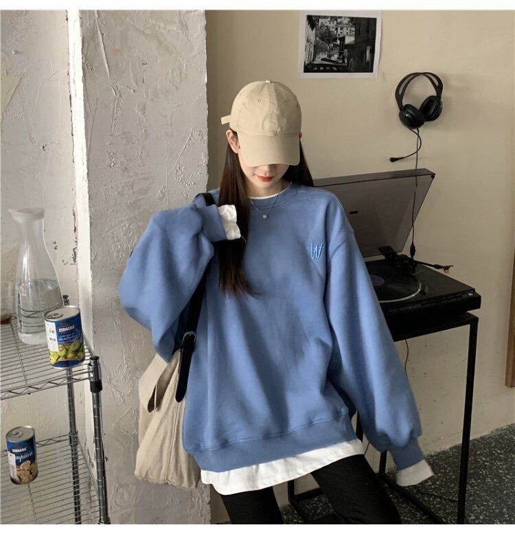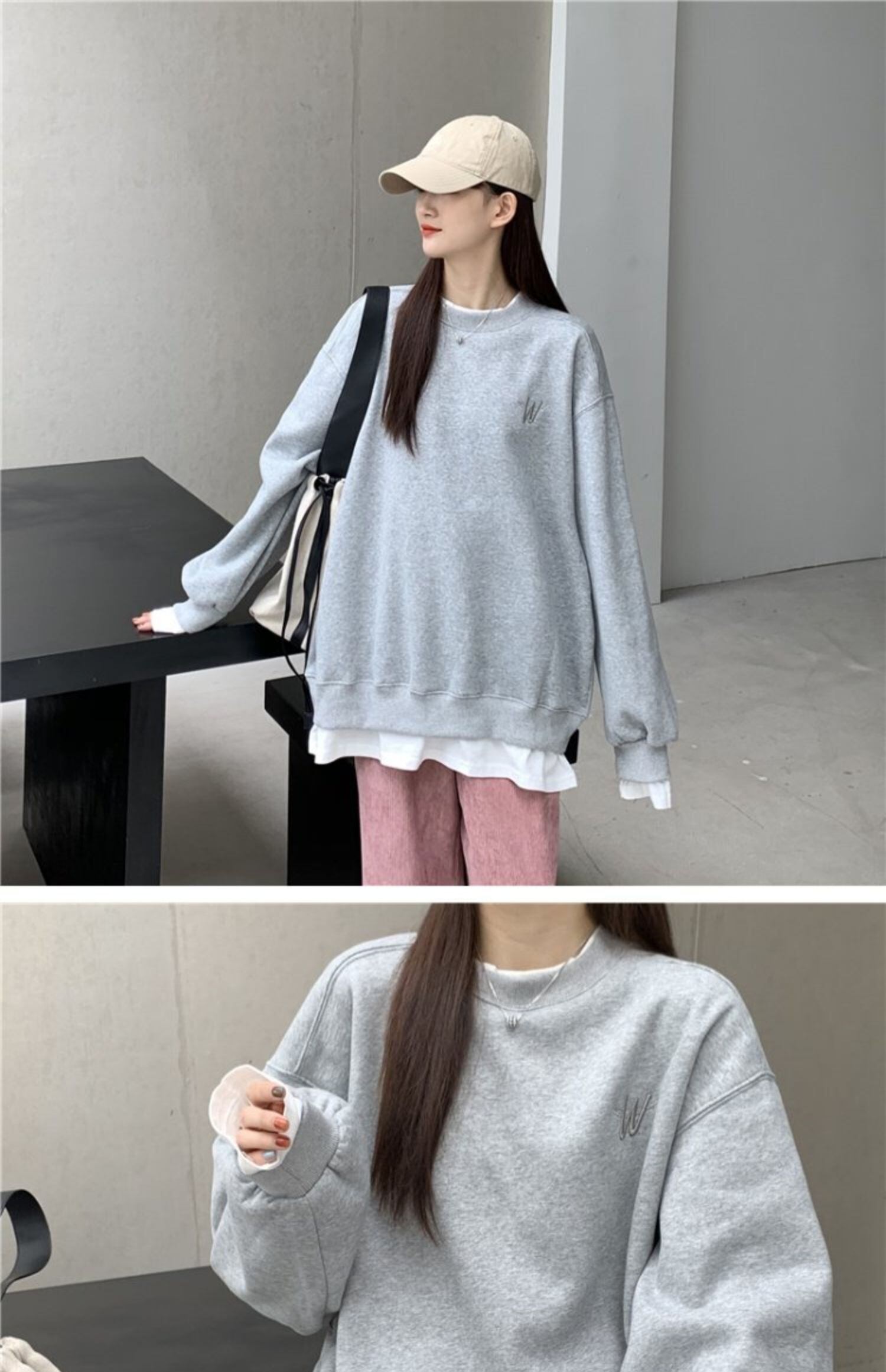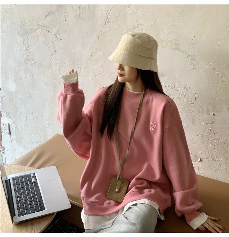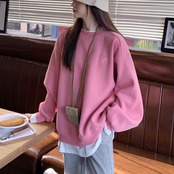 厚みセーター スプリング韓国ファッションラウンドネックルーズトップス 長袖スリーブジャケット ロング 春物 Oネック ステッチ スタイル コーデ marchs6733625169831