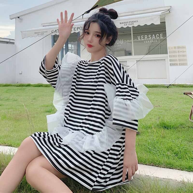メッシュTシャツレディース夏服ストライプルーズトップス 夏物 コーデ marchs6773097107744