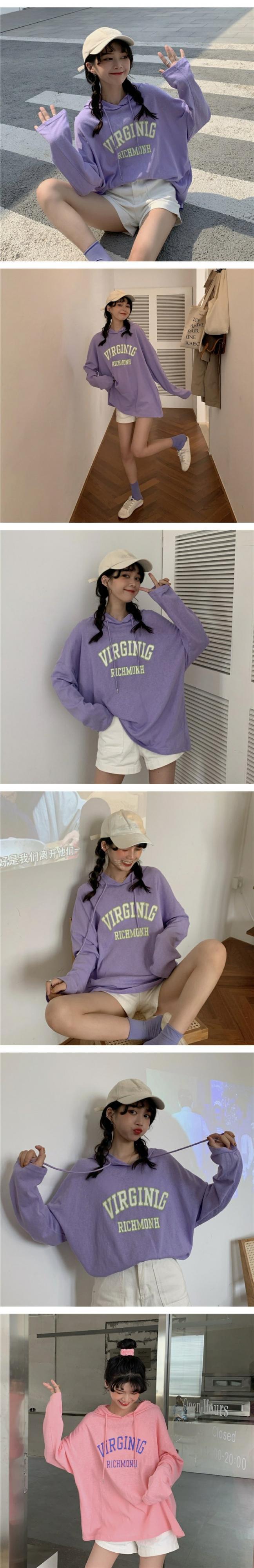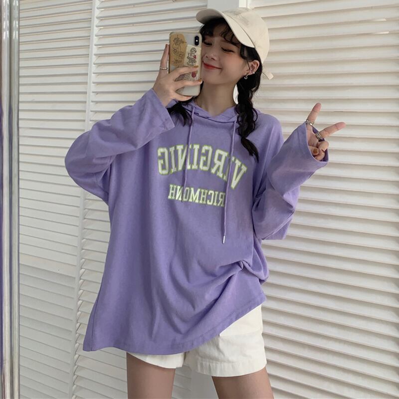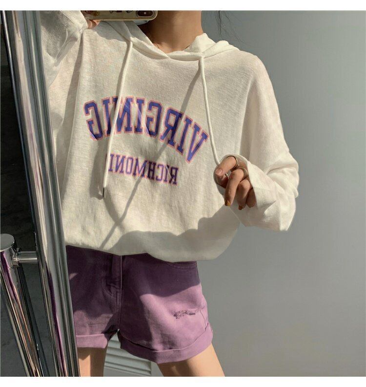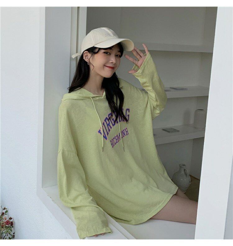 プリントプルオーバー セーター レディース夏服スタイル韓国ファッションルーズ薄手フードトップス ロング 夏物 長袖 コーデ marchs6732555954368