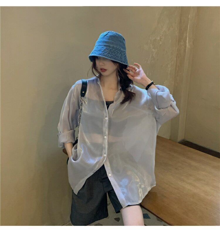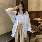 スプリング韓国ファッションルーズシャツ 薄手ジャケット レディース ロング 春物 シルク スタイル 長袖 コーデ marchs6798258343369