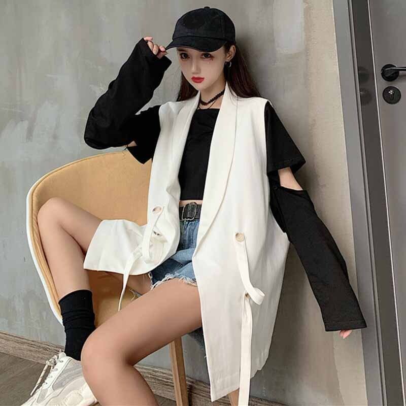 ブラックジャケット レディース夏服スタイル韓国ファッションルーズカジュアルダブルブレスト 夏物 コーデ marchs6739295384987