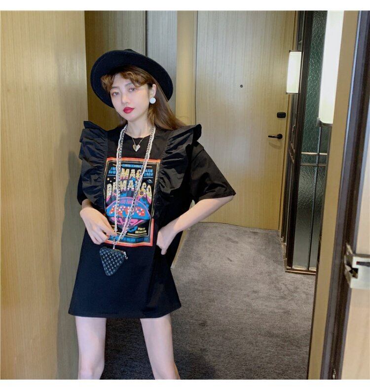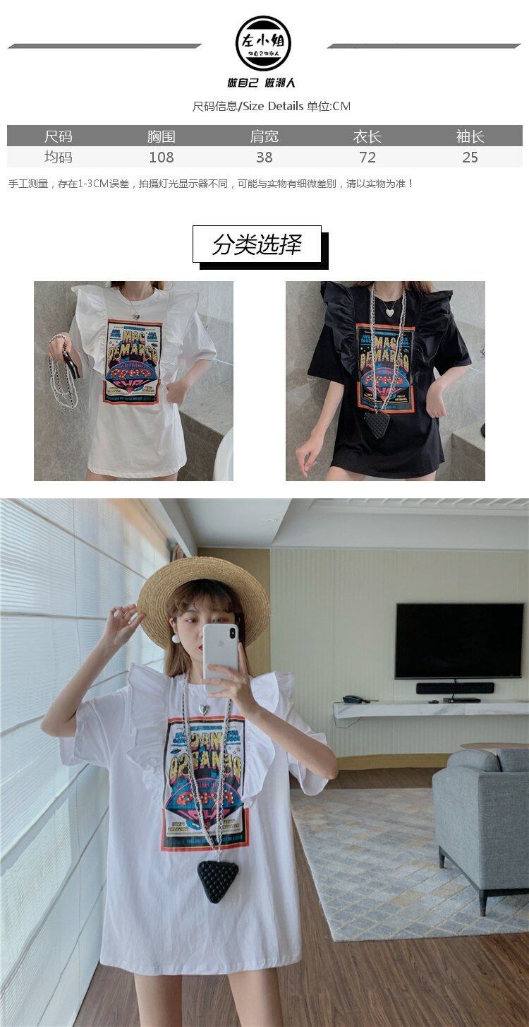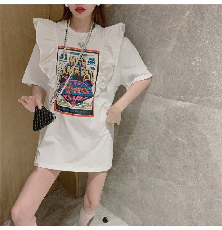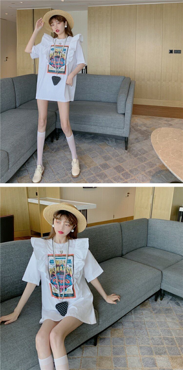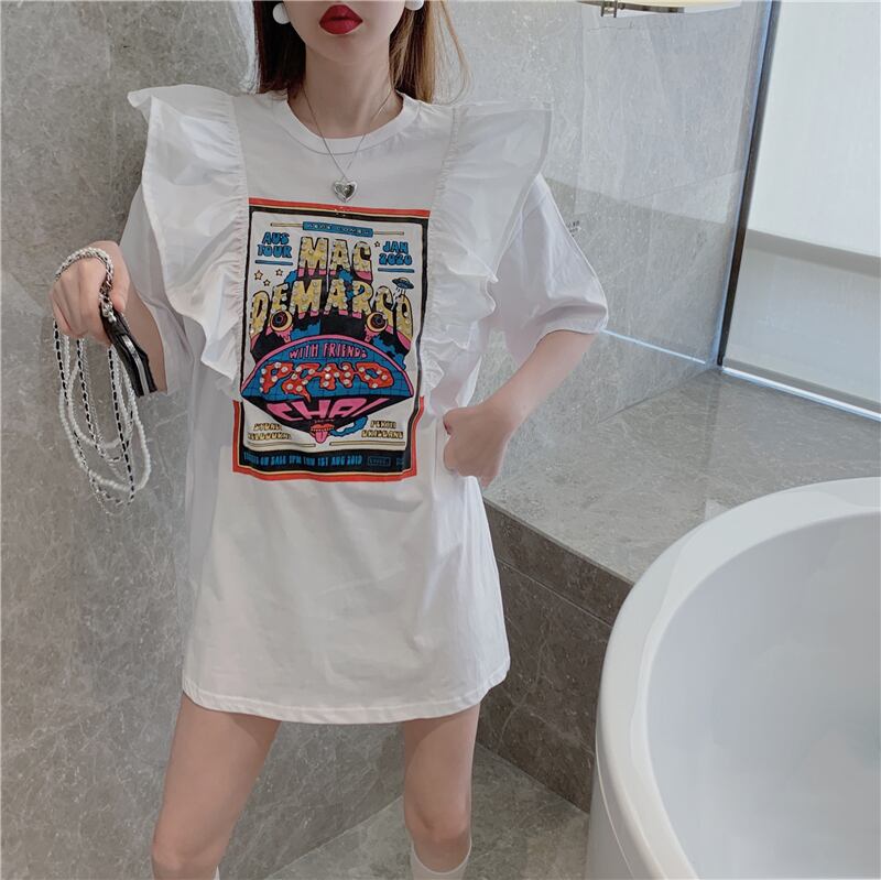 Tシャツレディース夏服プリントルーズトップス 夏物 ステッチ ミドル丈 コーデ marchs6785044380148