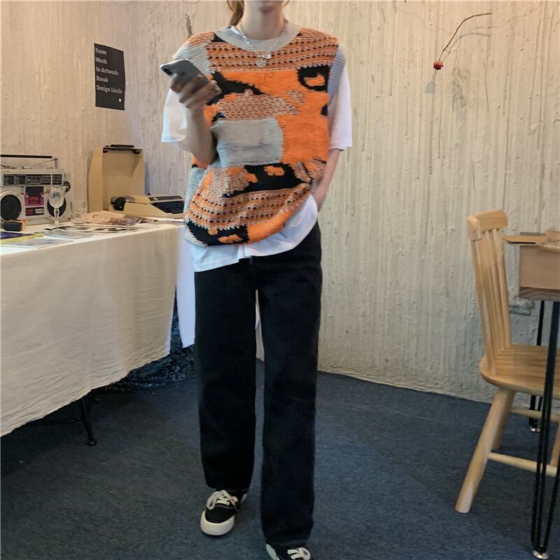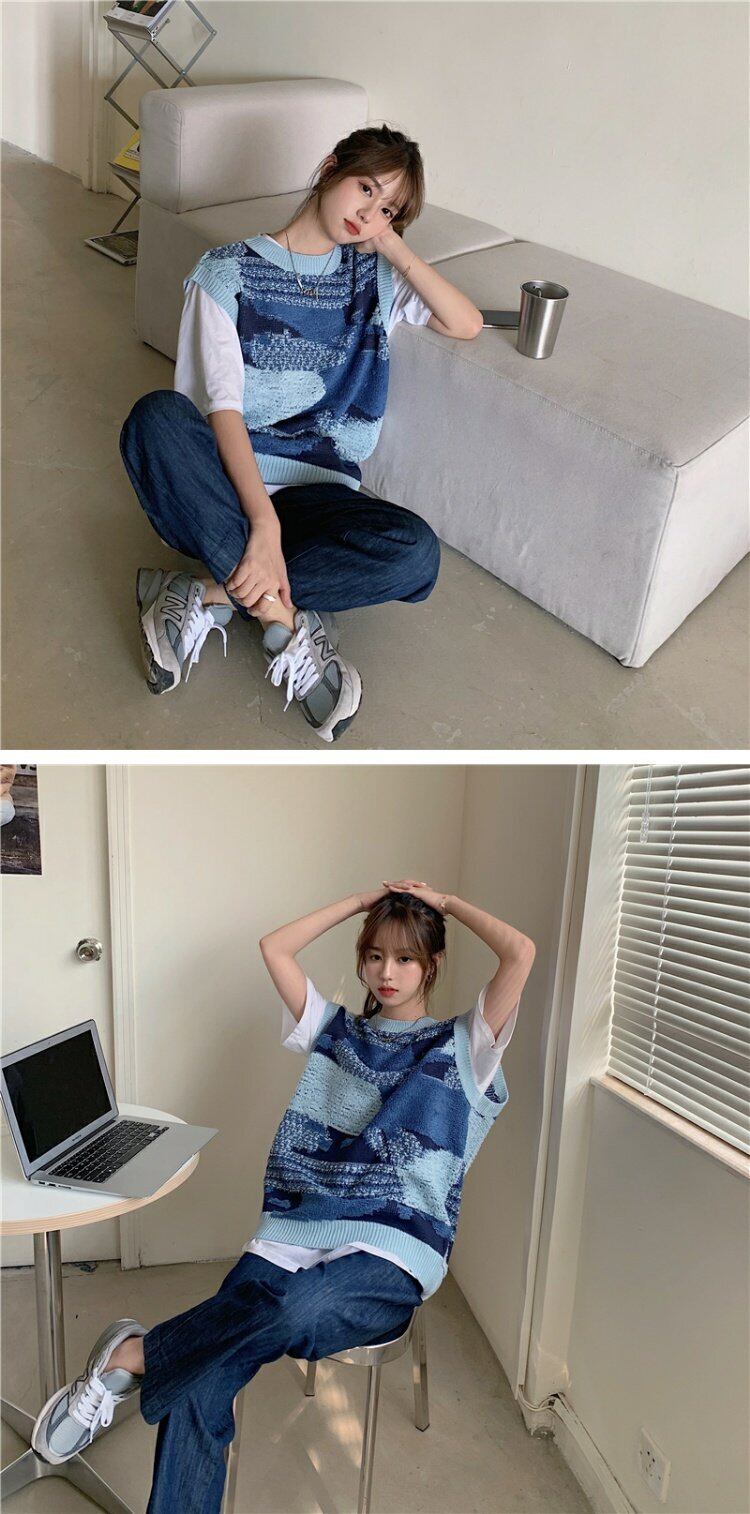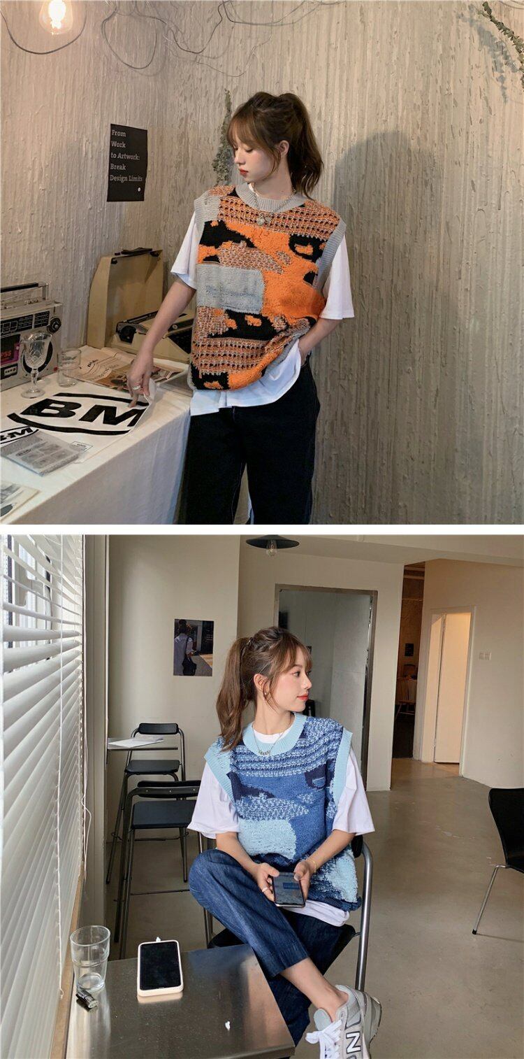 スプリング韓国ファッションカラールーズノースリーブニットセーター レディース 春物 ウエスト コーデ marchs6768185692135