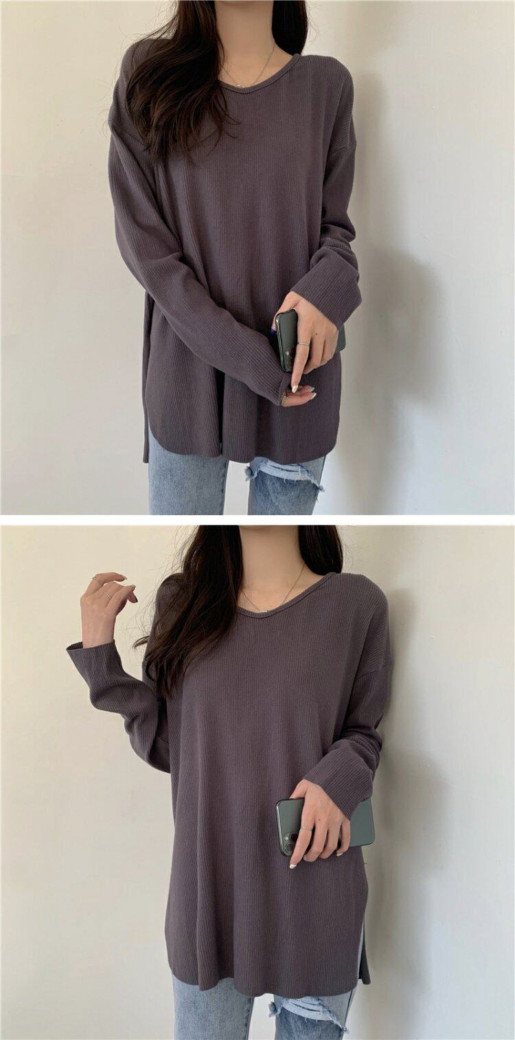 スプリングトレンドルーズゆったりシャツ ホワイトTシャツレディース ロング 春物 長袖 ミドル丈 コーデ marchs6784933646239