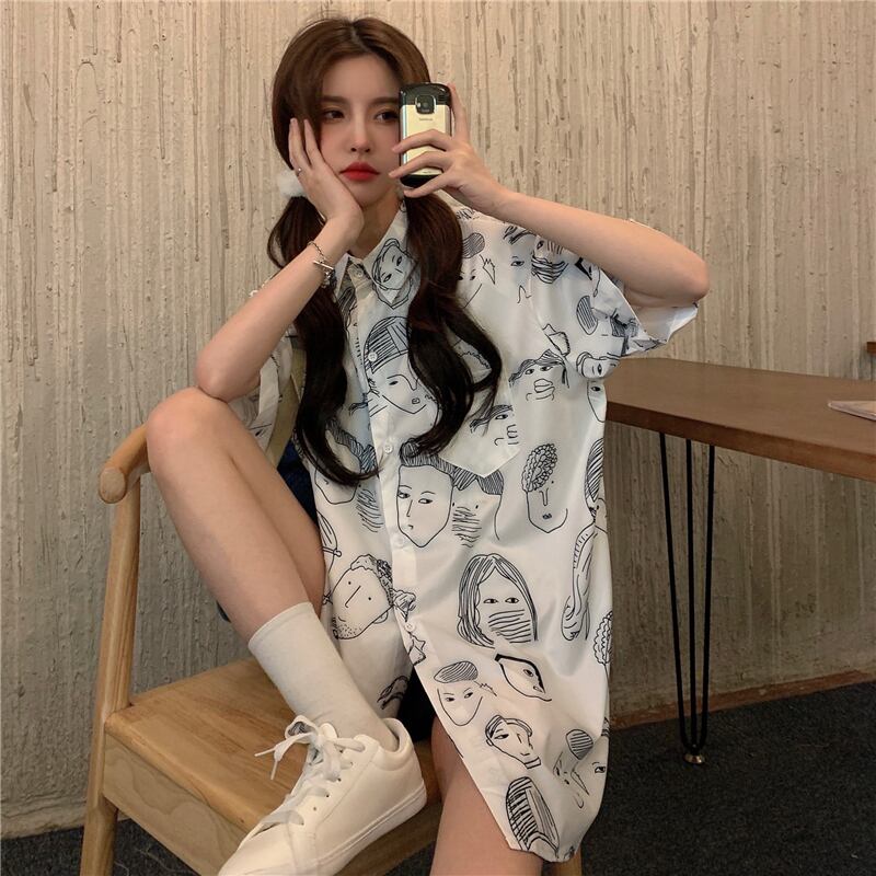夏服ジャケット スタイルスタンダードルーズプリントシャツ レトロ 夏物 ミドル丈 コーデ marchs6710618436359