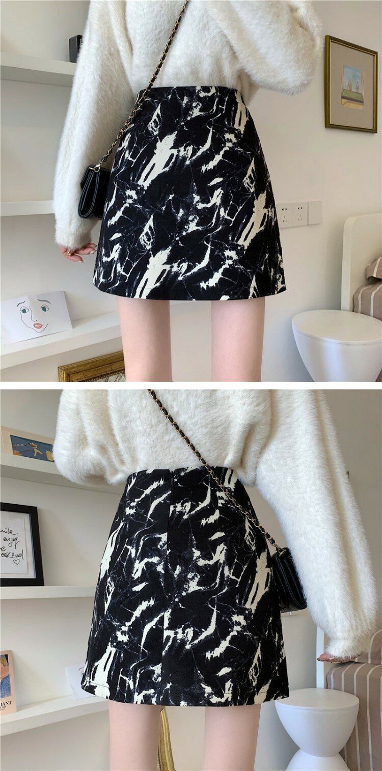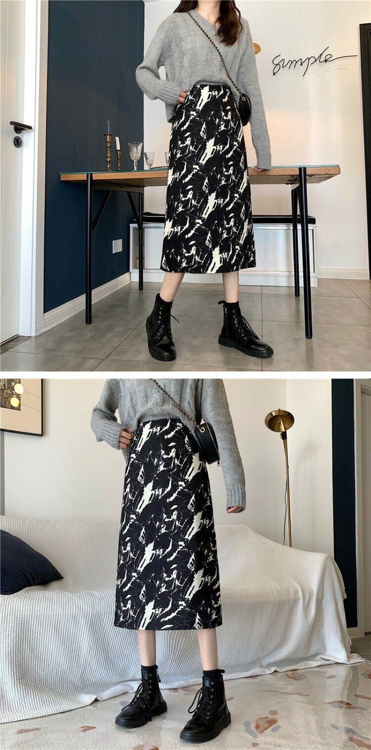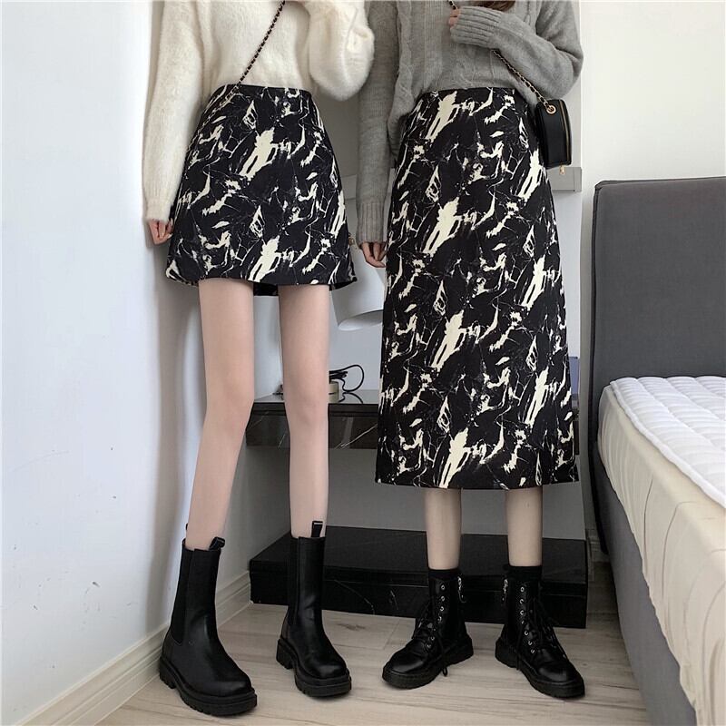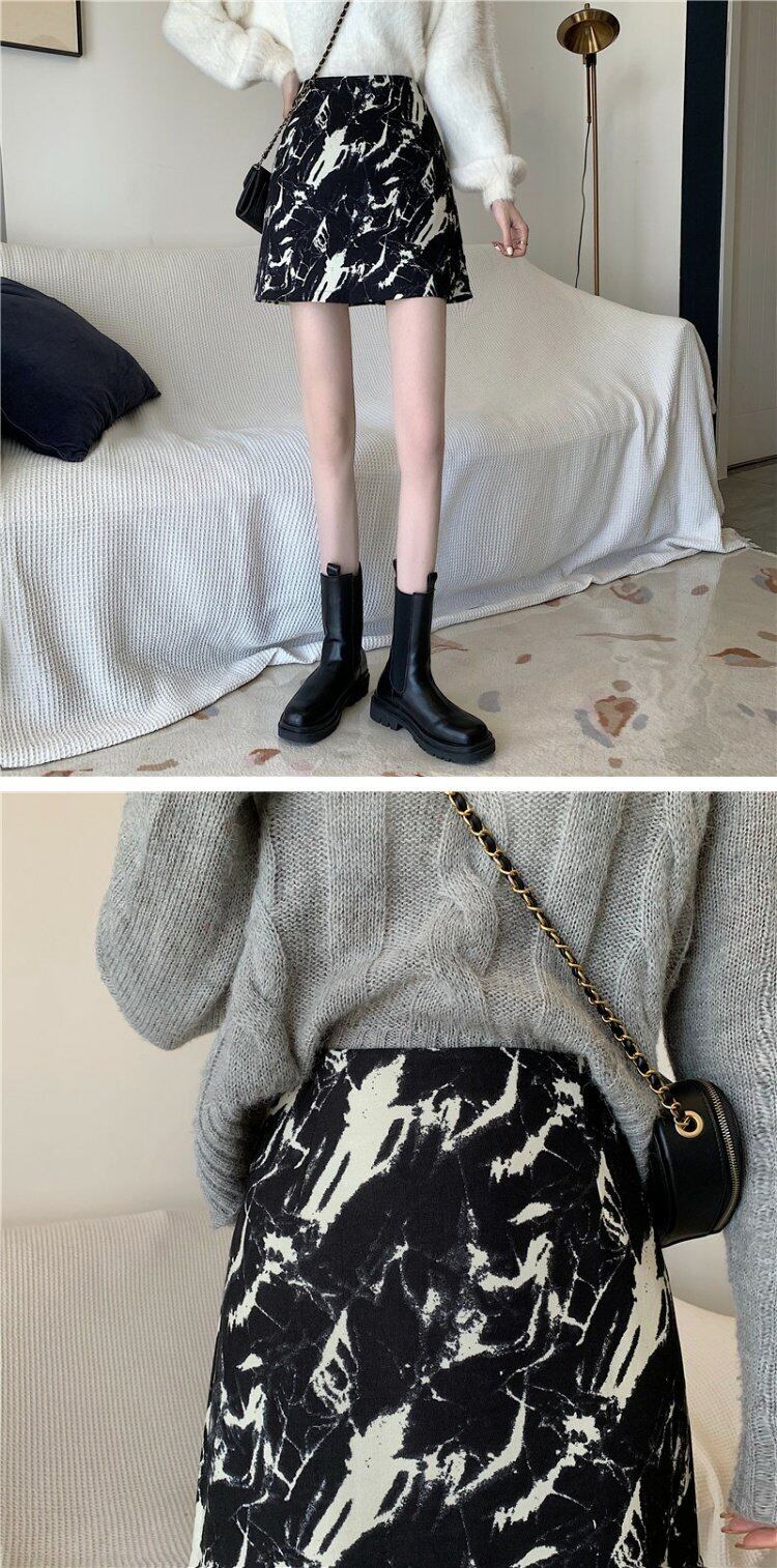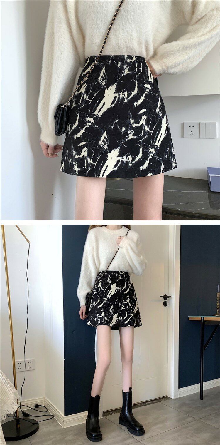 スプリングスタンダードブラックスカート レディースハイウェスト薄手Aライン レトロ 春物 ウエスト ミドル丈 コーデ marchs679940102091
