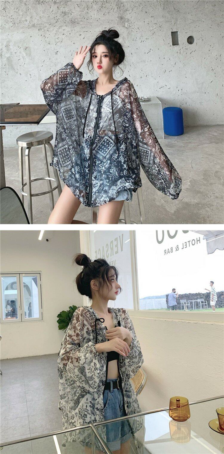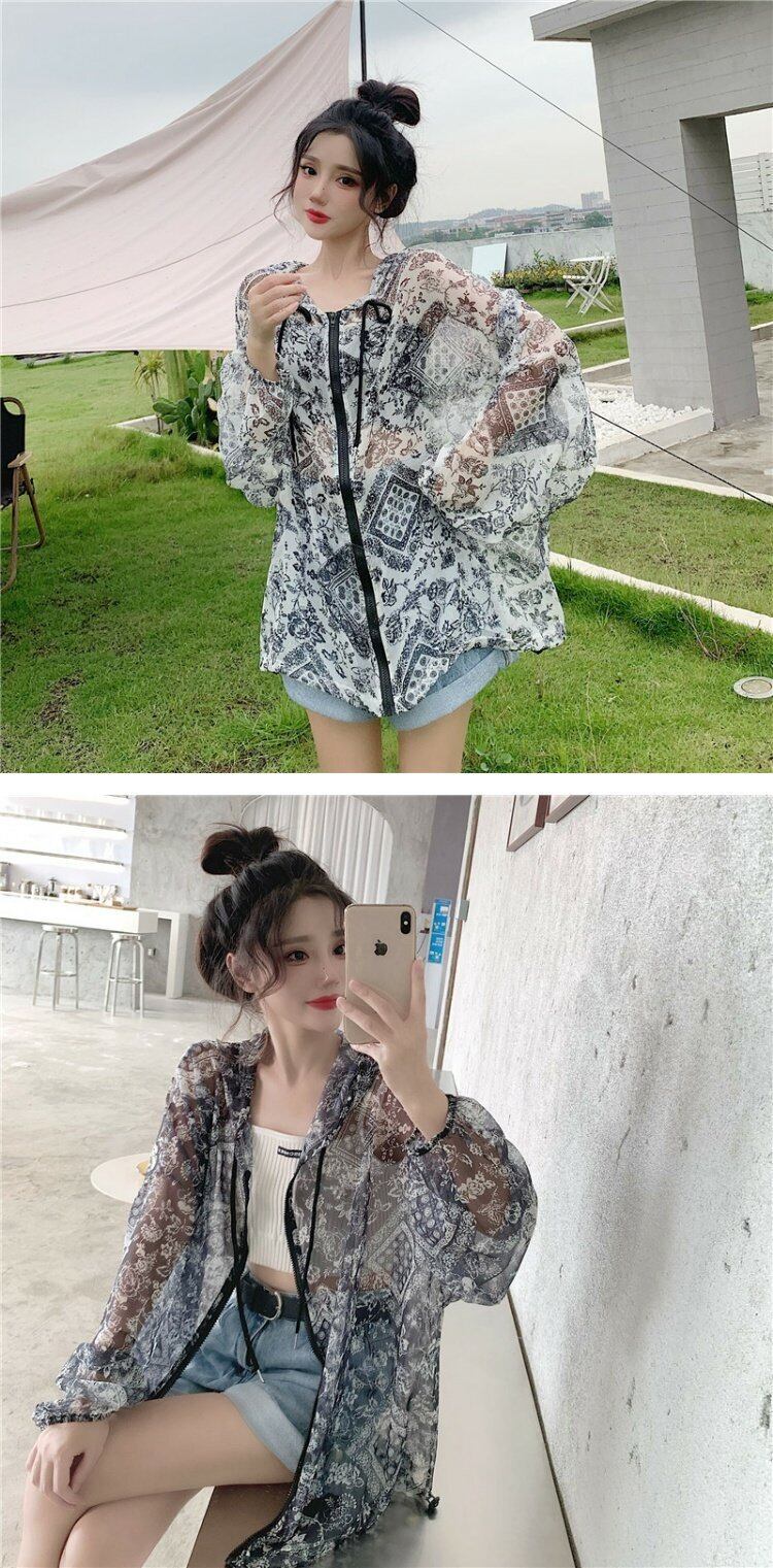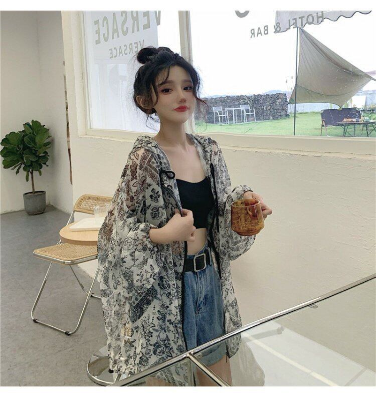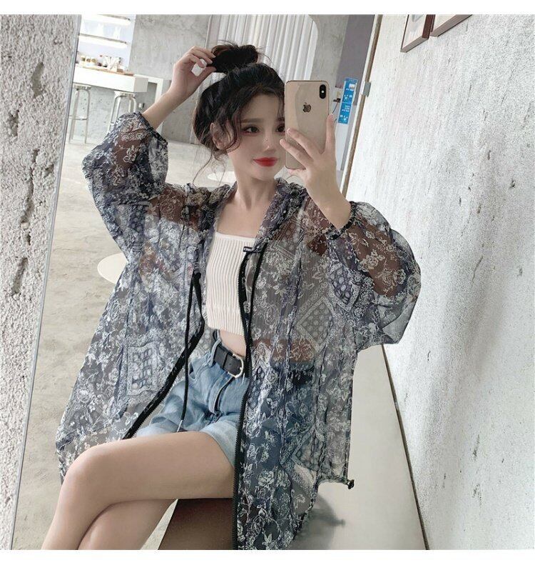 ジャケット レディース夏服スタンダードスタイルFlowerデザイン フードルーズ薄手シャツ カーディガン ロング レトロ 夏物 フラワーデザイン 長袖 コーデ marchs6783283961773