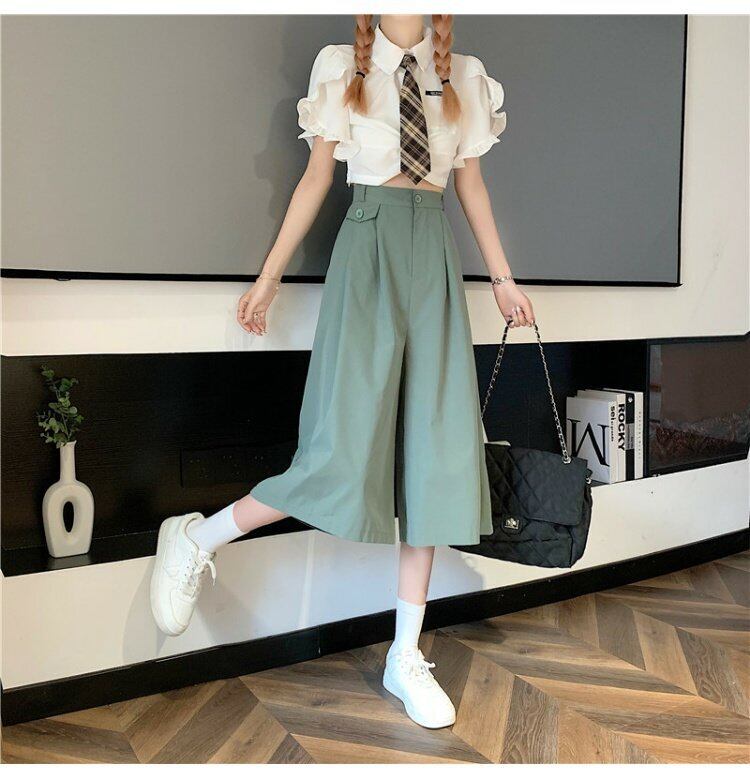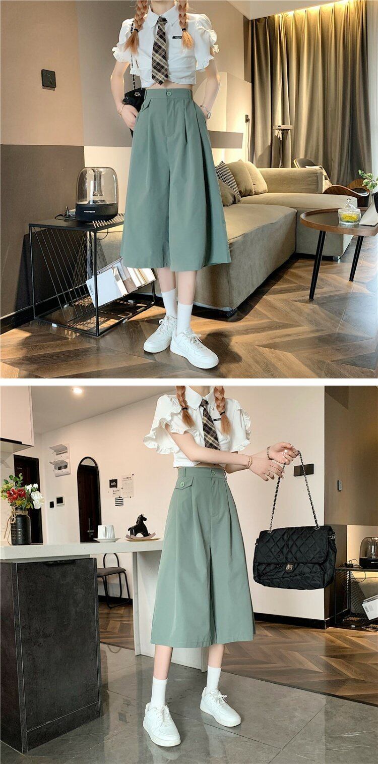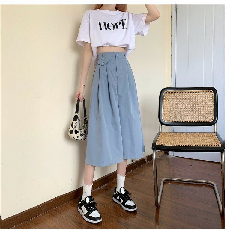 クロップドパンツ 夏服薄手ルーズハイウェストカジュアル 夏物 ウエスト ミドル丈 コーデ marchs6726945296013