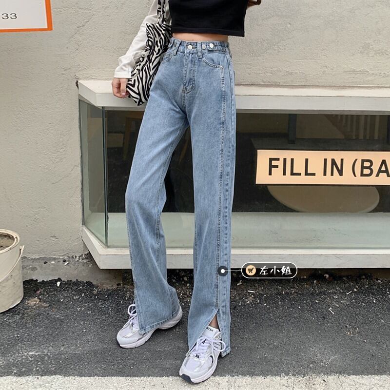 ジーンズ スプリングスタイルスリムハイウェストウェストルーズワイドレッグスリットパンツ 春物 ワイドパンツ ウエスト コーデ marchs6727219407274