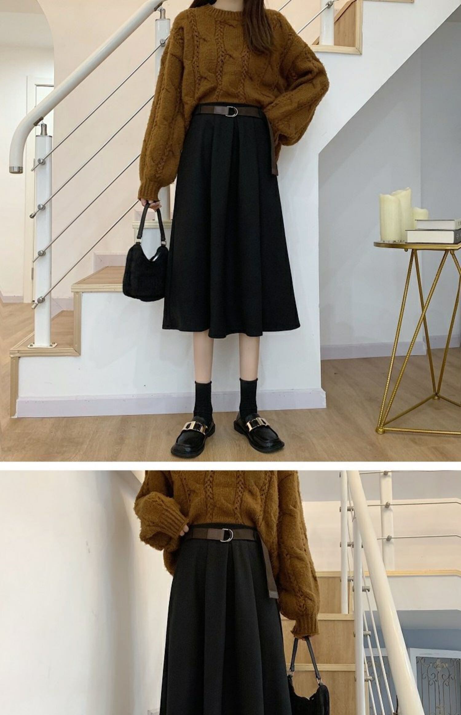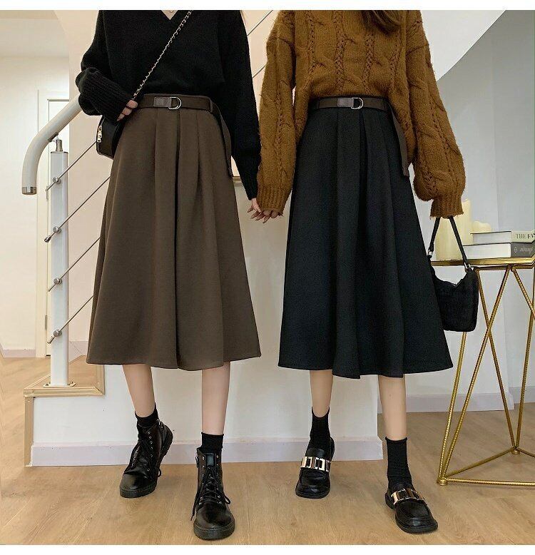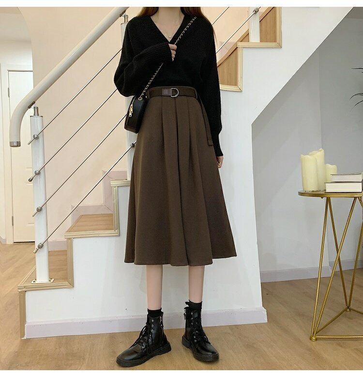 秋物ウィンターハイウェストウェスト薄手スカート Aラインレディースセーター オータム 冬物 ウエスト ミドル丈 コーデ marchs6721466405336