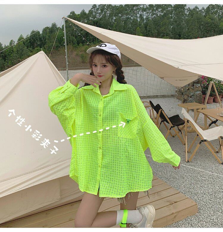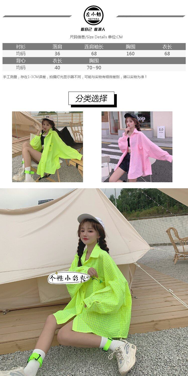 夏服韓国ファッションスタイルグリーン格子柄シャツ ジャケット レディース ロング 夏物 長袖 コーデ marchs6759210162938