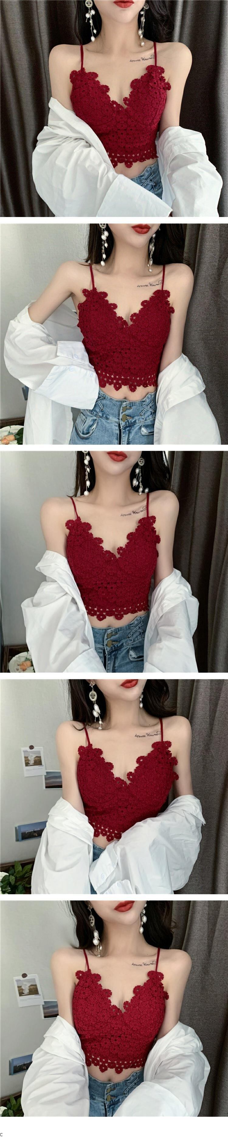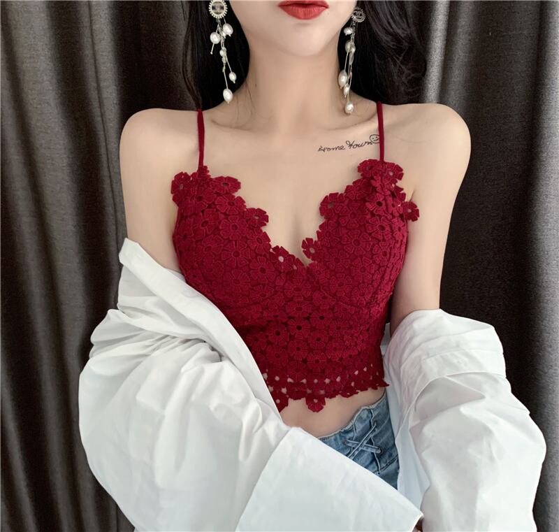 スタンダードレーストップス レディースFlowerデザイン リング バックブラ 夏服 レトロ 夏物 指輪 フラワーデザイン コーデ marchs6735672215349