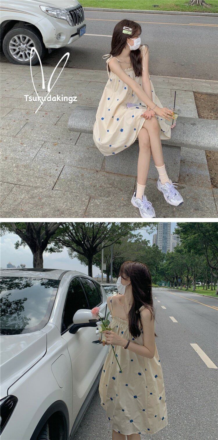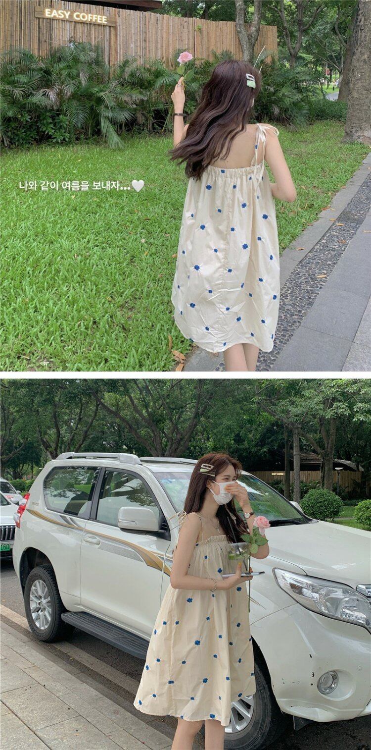 韓国ファッションFlowerデザイン ワンピースレディース夏服スカート レッド 刺繍 大人ガーリー スウィート キュート カジュアル 夏物 フラワーデザイン コーデ marchs6769074107244