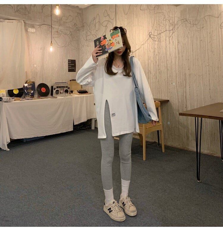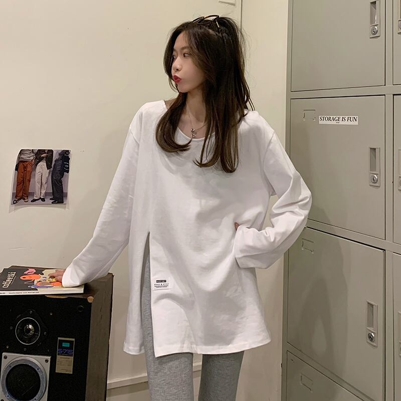 ホワイトTシャツシャツ スプリングゆったりルーズトップス ロング 春物 長袖 ミドル丈 コーデ marchs6787861840513