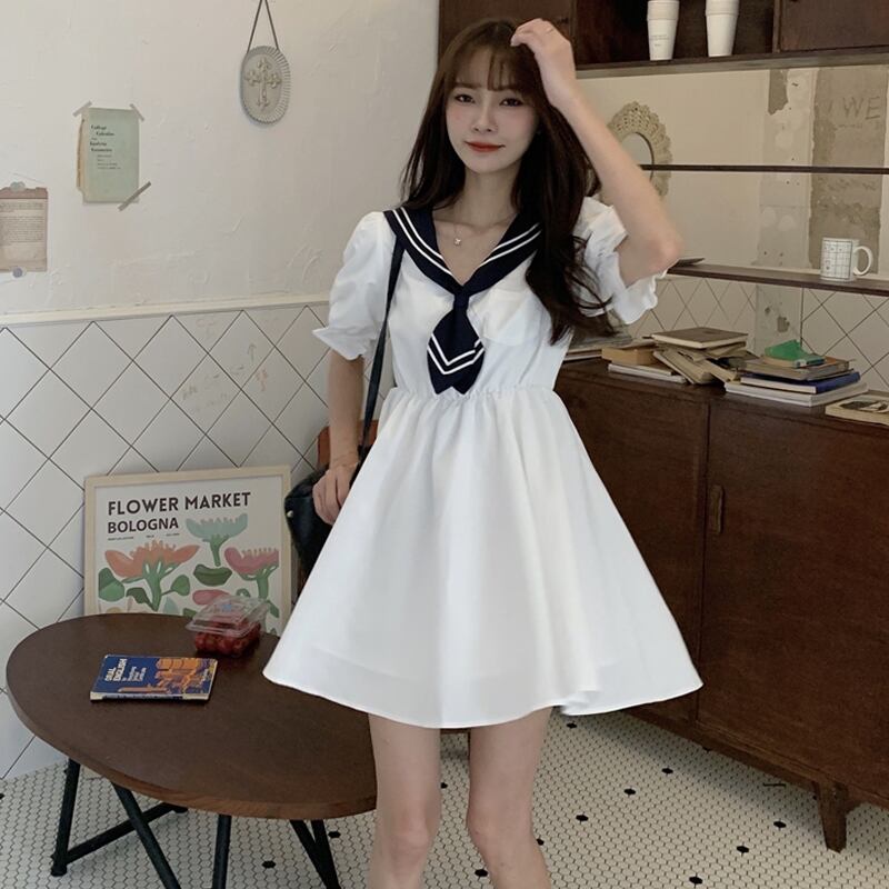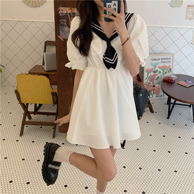 スタイルホワイトミニ ワンピースワンピースレディース夏服ネイビーカラースカート 大人ガーリー スウィート キュート カジュアル 夏物 コーデ marchs6733596502774