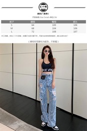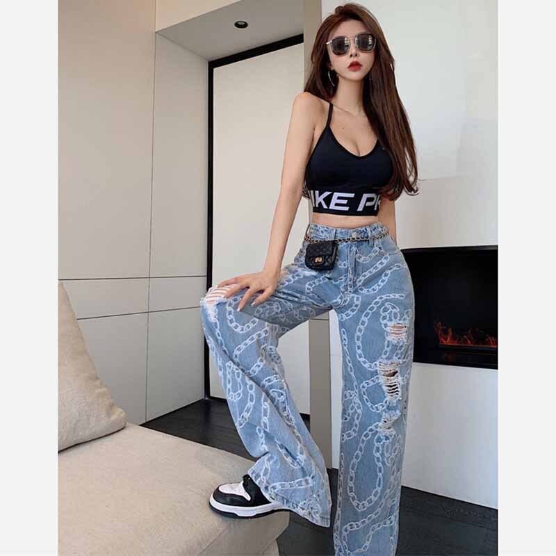ジーンズ トレンドパンツ 夏服ハイウェストウェストチェーン ワイドレッグ 夏物 ワイドパンツ ウエスト コーデ marchs6757123418692
