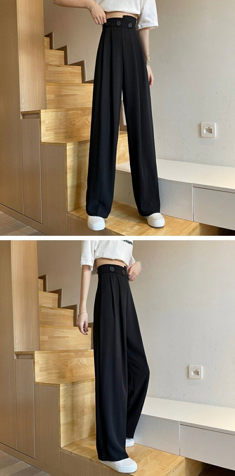 夏服ハイウェストウェストルーズブラックパンツ カジュアルレディース 夏物 ウエスト コーデ marchs6750264592621