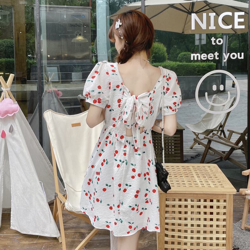 カラーワンピースレディース夏服スタイルウェストホルターリボンスカート 夏物 スクウェア ウエスト コーデ marchs6782358132080