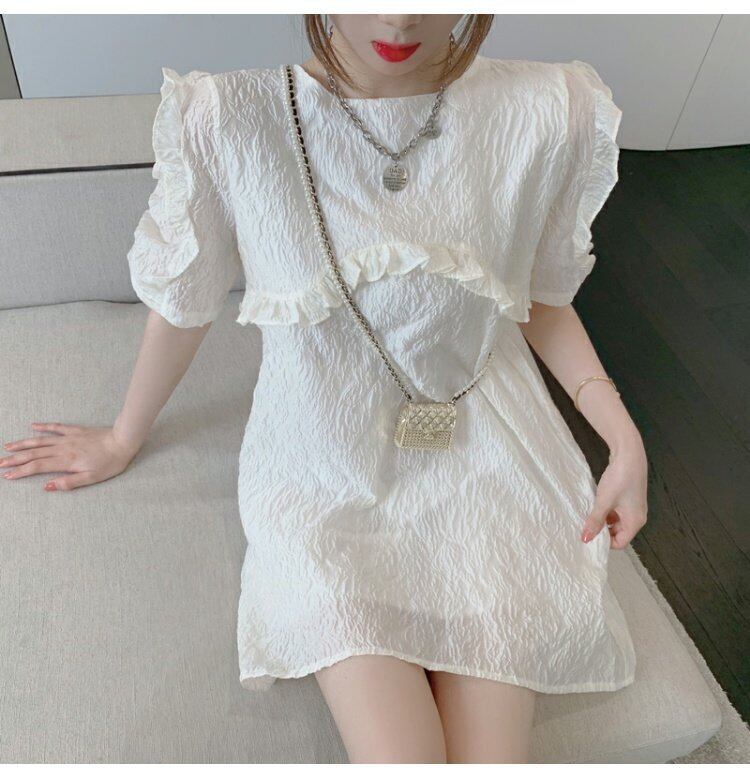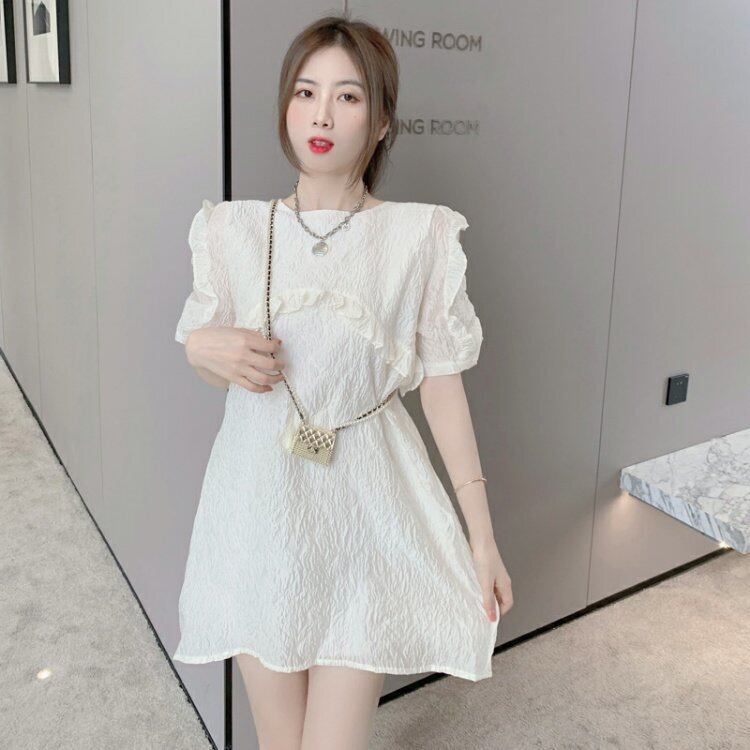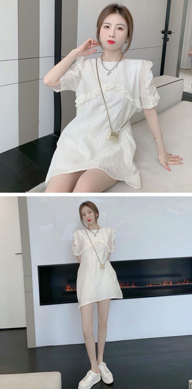 ホワイトワンピースレディース夏服スタンダードスタイルスリーブスカート レトロ 夏物 コーデ marchs6785876144912