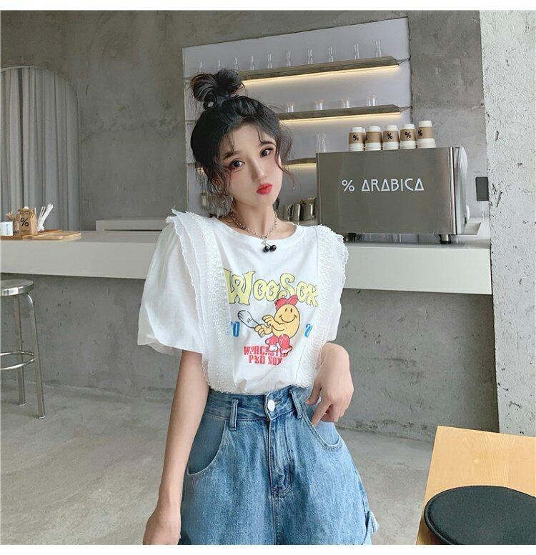 夏服プリントスリーブTシャツレディーストレンドパフスリーブトップス 夏物 コーデ marchs6727701696194