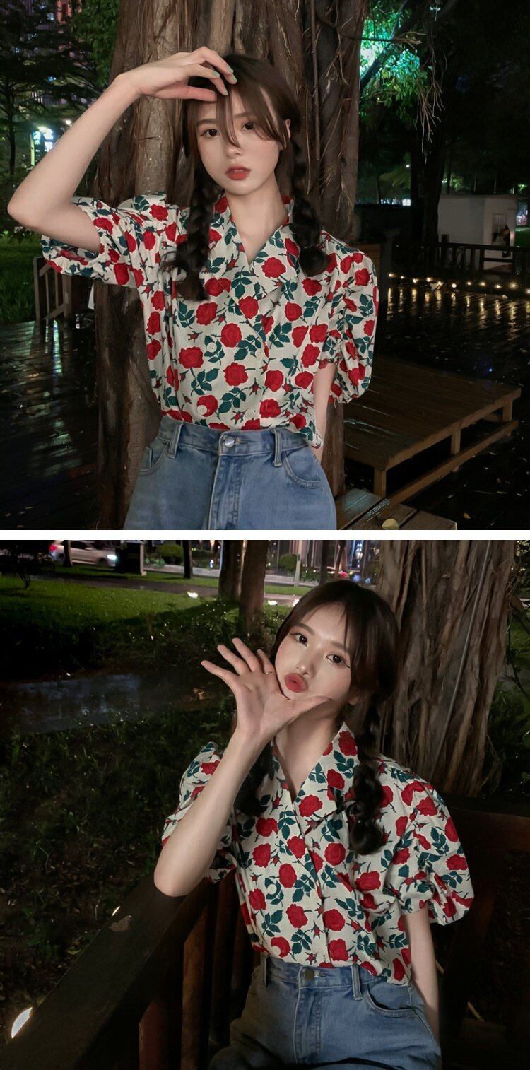 夏服スタンダードダブルブレストFlowerデザイン スリーブシャツ レディース レトロ 大人ガーリー スウィート キュート カジュアル 夏物 フラワーデザイン コーデ marchs6743604882165