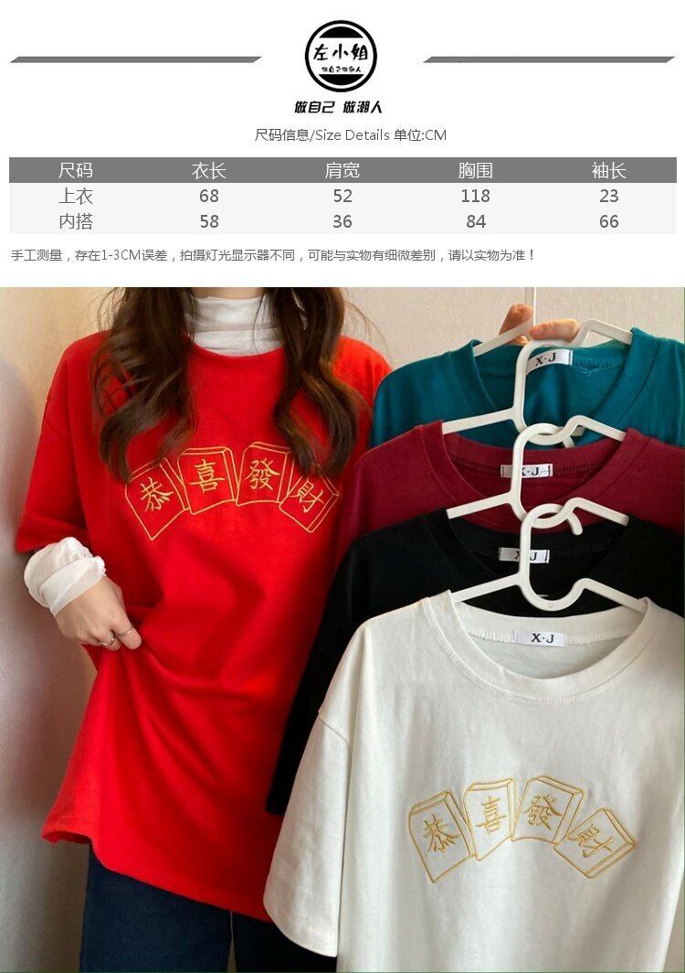 スプリング刺繍ラウンドネックTシャツシャツ レッドトップス ゆったり 春物 Oネック コーデ marchs6738465626107