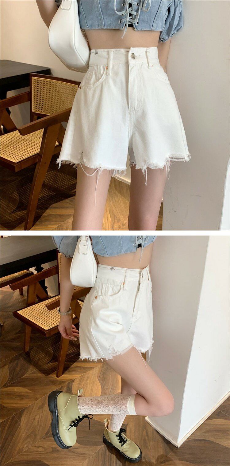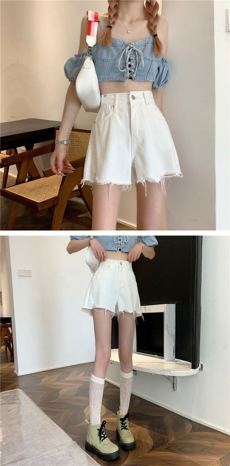 レディースホワイトショーツ 夏服ハイウェストウェストパンツ ルーズワイドレッグ 夏物 ワイドパンツ ウエスト コーデ marchs6754932606401