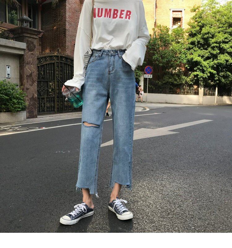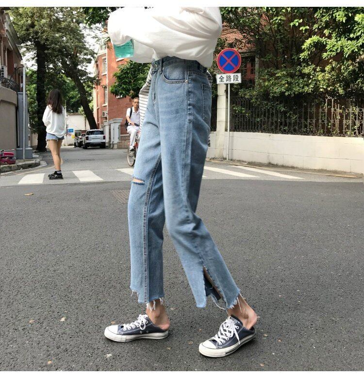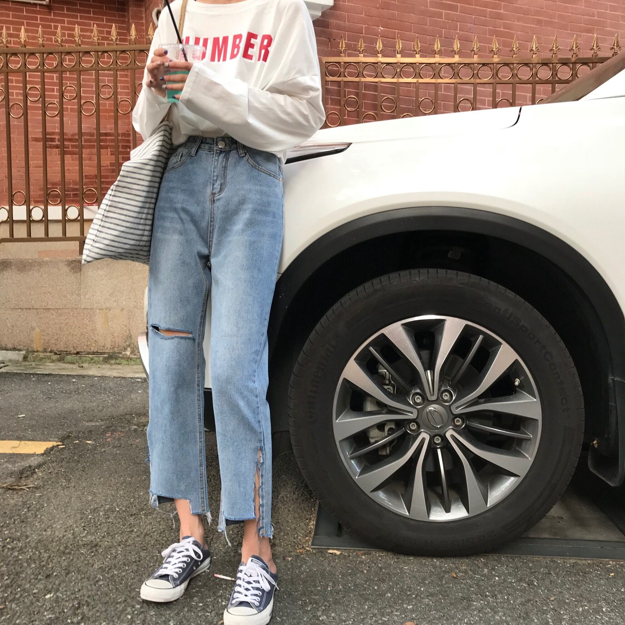 夏服韓国ファッションパンツ ハイウェストウェストジーンズ レディース 夏物 スタイル ウエスト コーデ marchs6715912030455