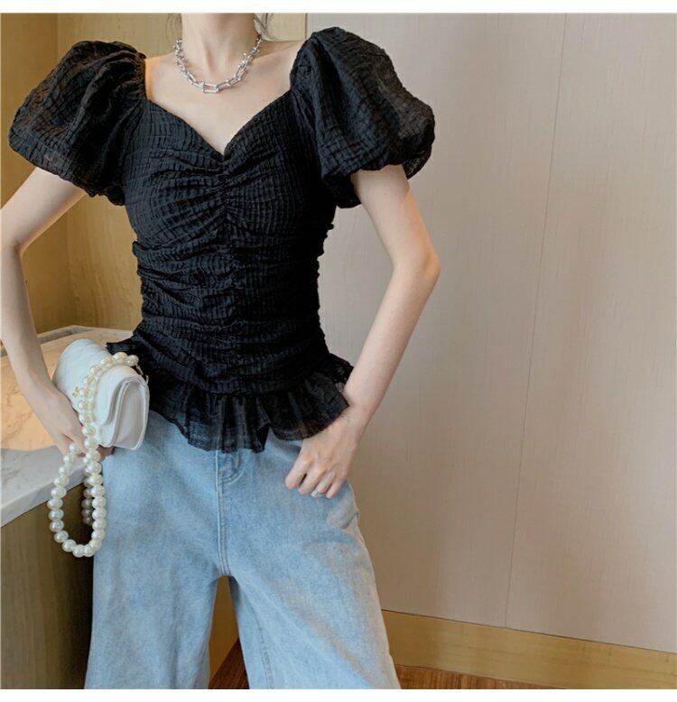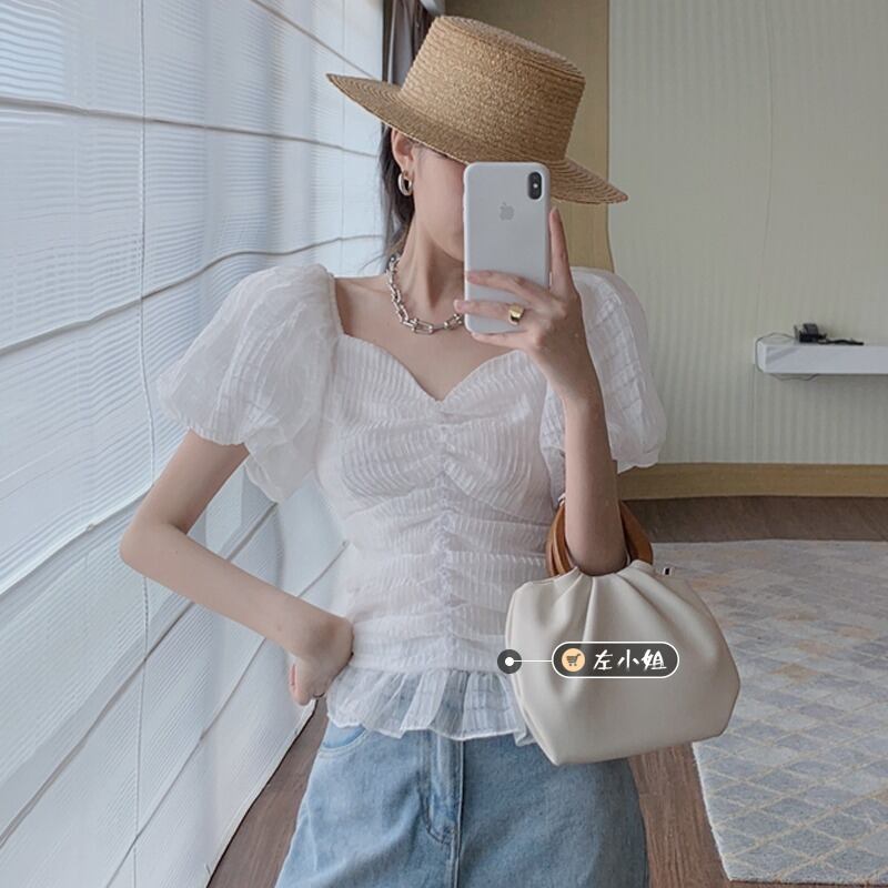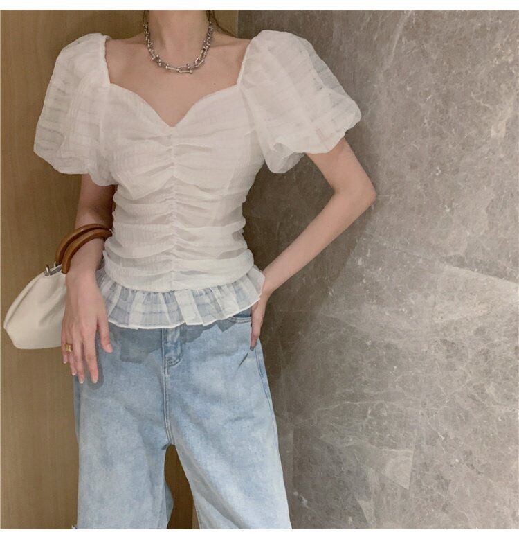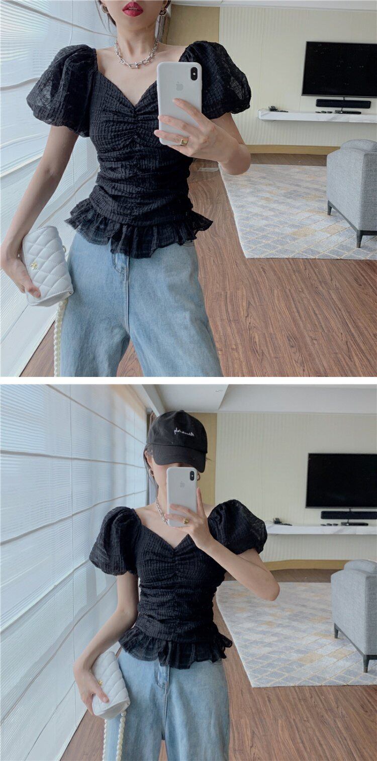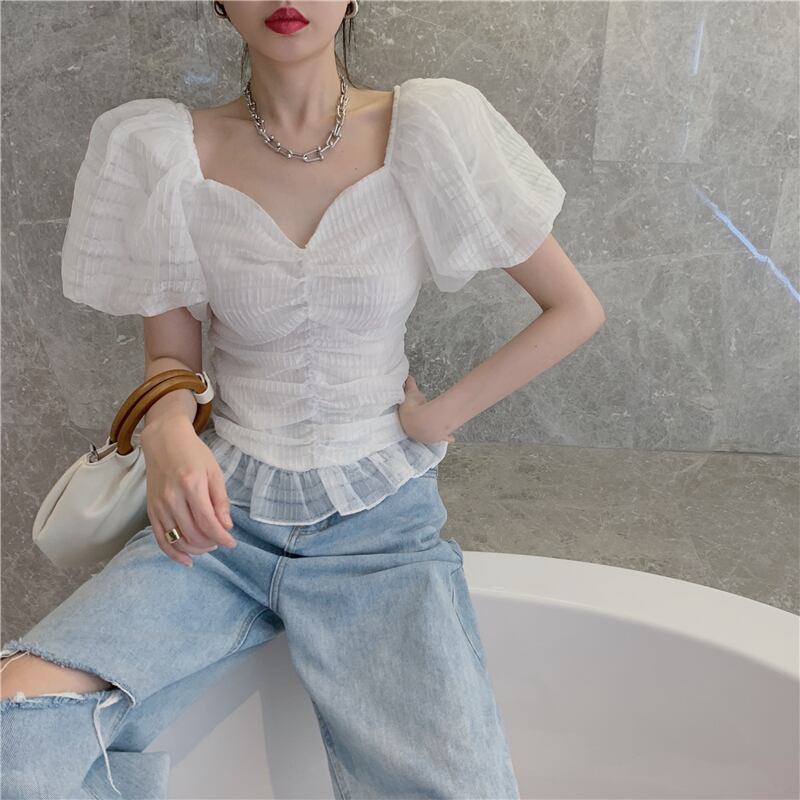スリムVネックスリーブホワイトシャツ 夏服韓国ファッション半袖 ショート ハーフスリーブ 夏物 コーデ marchs6749045576626