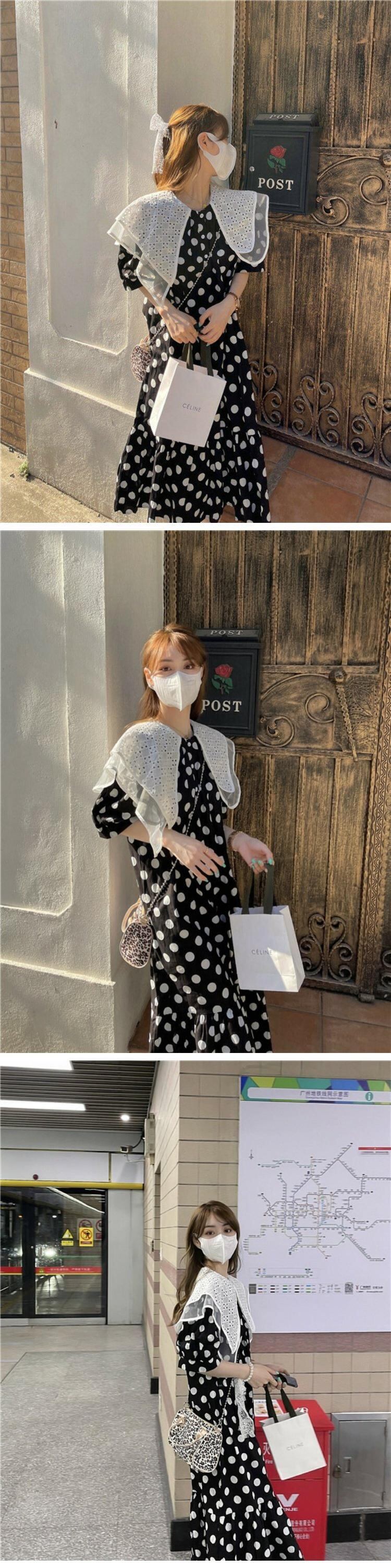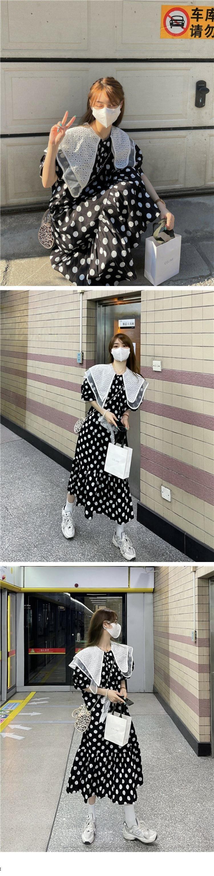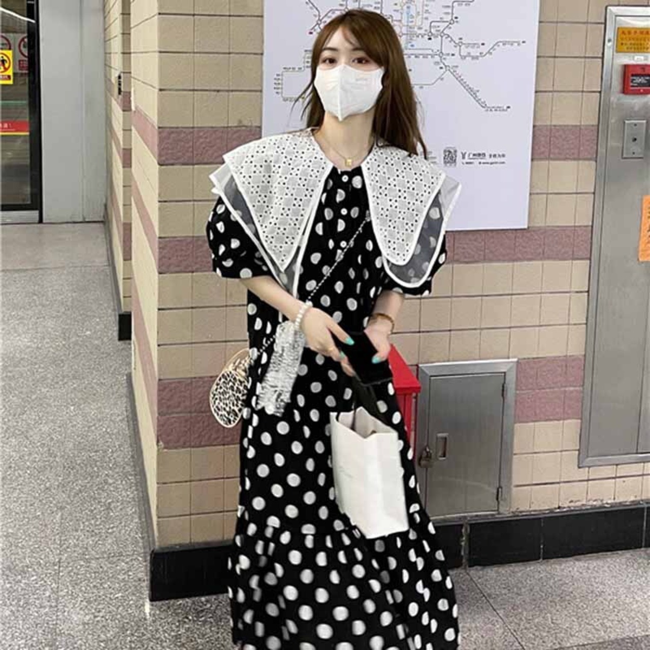スタンダード水玉スリーブラッフルワンピースレディース夏服ロングスカート レトロ 夏物 コーデ marchs6779295731886