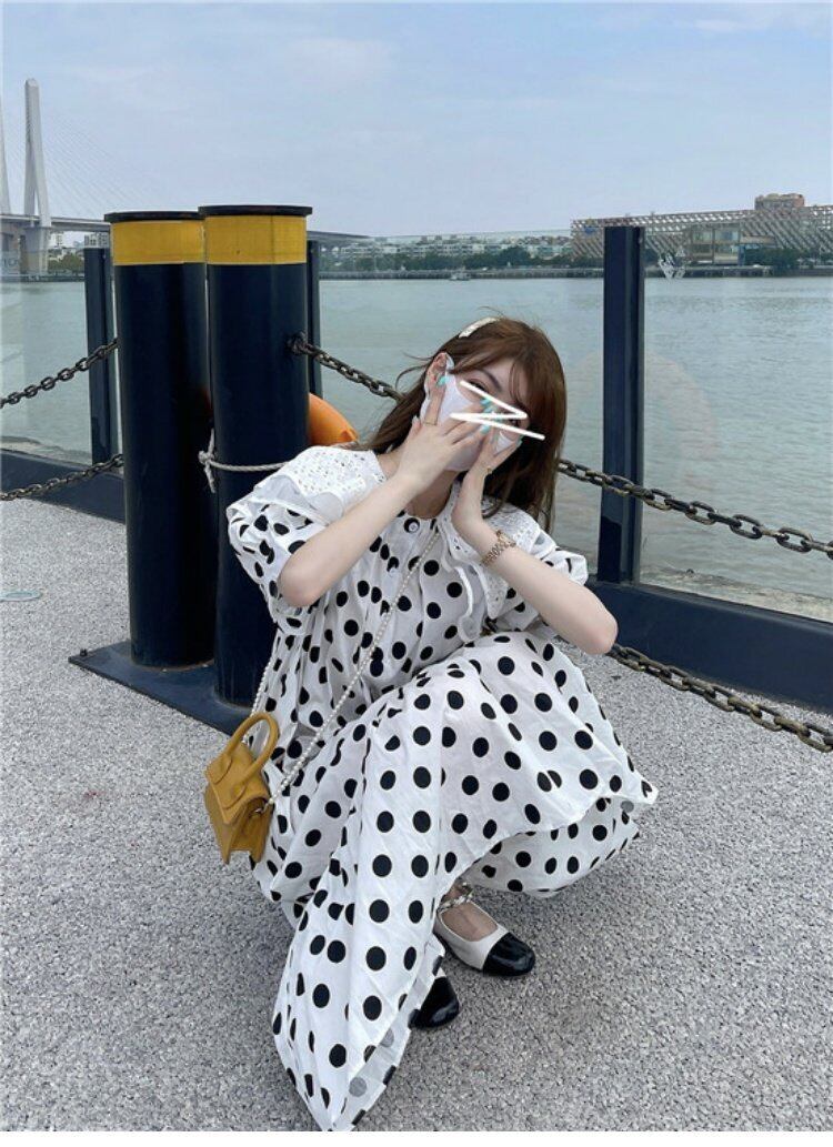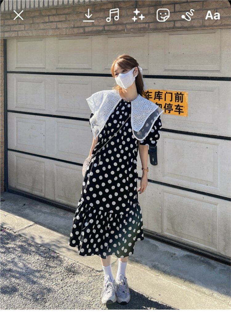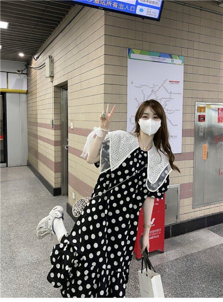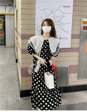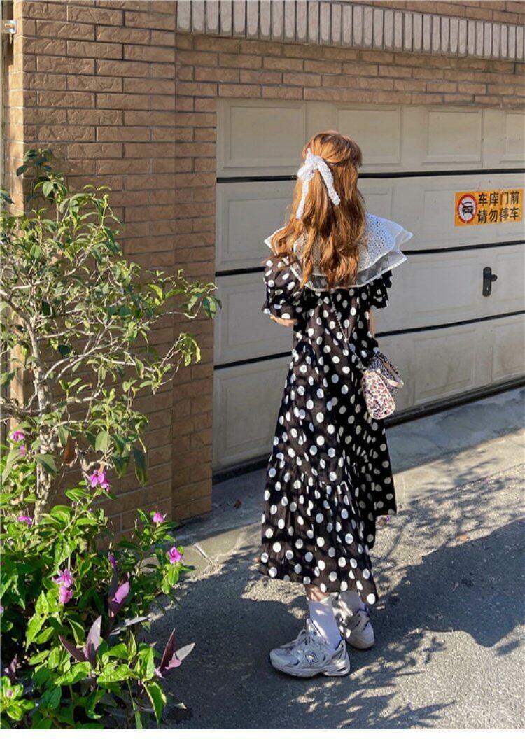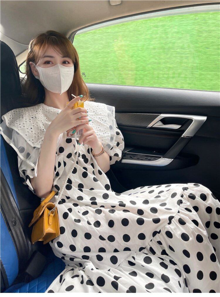 スタンダード水玉スリーブラッフルワンピースレディース夏服ロングスカート レトロ 夏物 コーデ marchs6779295731886